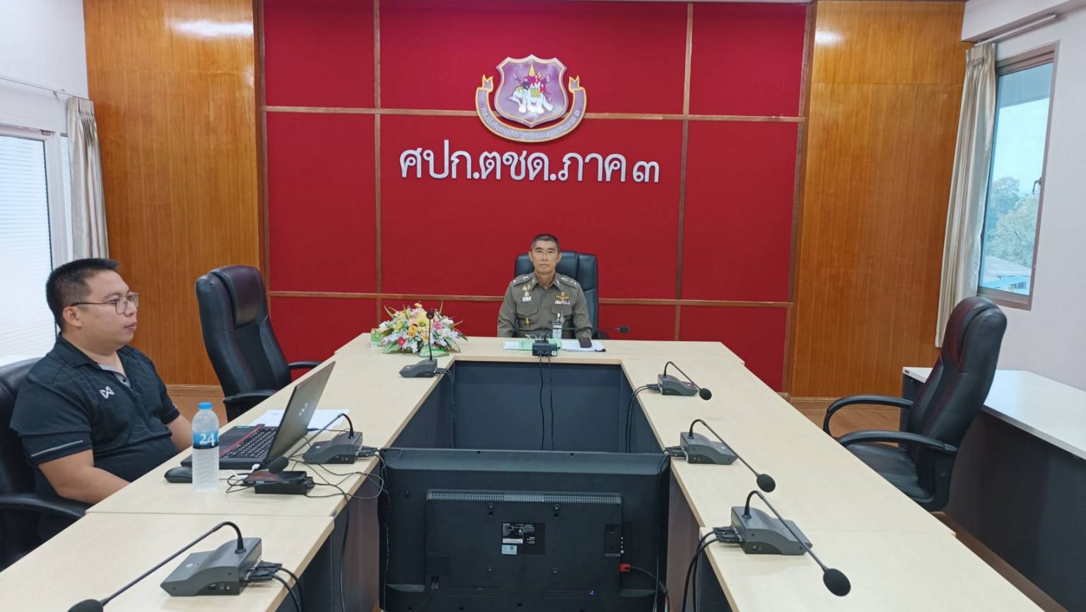 เมื่อ 16 ม.ค.69 09.00 น. พ.ต.อ.วิศาลพงศ์ สร้อยกุลบดี รอง ผบก.ตชด.ภาค 3, ร.ต.อ.อนุสรณ์ ปัญญา รอง สว.ฯ รรท.สว.ฝอ.บก.ตชด.ภาค 3 (ผงป.) และ จนท.ที่เกี่ยวข้องฯ ร่วมรับฟังการประชุมขับเคลื่อนงาน ศปชก.ตร. ครั้งที่ 3/2569 ผ่านระบบ Zoom โดยมี พล.ต.อ.สำราญ นวลมา รอง ผบ.ตร./ผอ.ศปชก.ตร. เป็นประธานฯ
