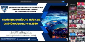 เมื่อ 17 พ.ย. 68 เวลา 10.30 น. พ.ต.อ.วิศาลพงศ์ สร้อยกุลบดี รอง ผบก.ตชด.ภาค 3., พ.ต.ท.วิมาณ ฉิมพล สว.ฝอ.บก.ตชด.ภาค 3 (ผงป.) พร้อมด้วยเจ้าหน้าที่งานที่เกี่ยวข้อง เข้าร่วมประชุมทางไกล (Video Conference) การประชุมมอบนโยบาย ศปชก.ตร. ประจำปีงบประมาณ พ.ศ.2569 โดยมี พล.ต.อ.สำราญ นวลมา รอง ผบ.ตร./ผอ.ศปชก.ตร. เป็นประธานการประชุมฯ
