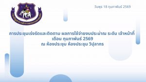 เข้าร่วมการประชุมเร่งรัดและติดตามผลการใช้จ่ายงบประมาณ ระดับ เจ้าหน้าที่ เดือน ก.พ.2569 ผ่านระบบการประชุมทางไกล (Video Conference) ณ ห้องประชุม ศปก.ตชด.ภาค 3 โดยมี พ.ต.อ.หญิง นธี หงษ์ษา รอง ผบก. อก.บช.ตชด. เป็นประธานการประชุม