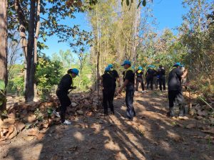 เมื่อ 13 ก.พ.69 เวลา 09.00 น. พ.ต.อ.อดุลย์ สิริสิทธินันท์ รอง ผบก.ตชด.ภาค 3 มอบหมายให้ ร.ต.ต.วรสาร พานิชโปรยโสภา รอง สว.ฯ รรท.สว.ฝอ.บก.ตชด.ภาค 3 นำข้าราชการตำรวจจิตอาสาพระราชทาน จำนวน 15 นาย เข้าร่วมกิจกรรมจิตอาสา ทำแนวกันไฟ ณ สวนป่าชุมชนบ้านปางเปา ม.8 เชื่อมเขตติดต่อบ้านปงแสงทอง ม.1 ต.ขี้เหล็ก อ.แม่แตง จว.เชียงใหม่ โดยมี นายจักรพันธ์ ทองอ่ำ นายอำเภอแม่แตง เป็นประธานในพิธี