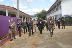เมื่อ 26 พ.ย.67 เวลา 10.30 น. พล.ต.ต.วรพัฒน์ บุญมา ผบก.ตชด.ภาค 3 มอบหมายให้ พ.ต.อ.อภิชาติ รักพงษ์ รอง ผบก.ตชด.ภาค 3 ,พ.ต.อ.ศุภวัฒน์ ศรีชัยชนะ ผกก.ตชด.34 และ พ.ต.ท.รัฐกร อินทนิล รอง ผกก.ตชด.34 เข้าตรวจพื้นที่ ร่วมกับ คณะส่วนล่วงหน้า (ฉก.ทม.รอ.904 และ สสท.) เพื่อเตรียมการรับเสด็จฯ สมเด็จพระกนิษฐาธิราชเจ้ากรมสมเด็จพระเทพรัตนราชสุดาฯ สยามบรมราชกุมารี ทรงเสด็จพระราชดำเนินปฏิบัติพระราชกรณียกิจ ในโรงเรียนตำรวจตระเวนชายแดนบ้านแม่กลองคี อ.อุ้มผาง จว.ตาก ห้วงเดือน ธ.ค.67 พร้อมนี้ได้รับคำแนะนำจากคณะส่วนล่วงหน้า เพื่อนำไปปฏิบัติให้สมพระเกียรติต่อไป