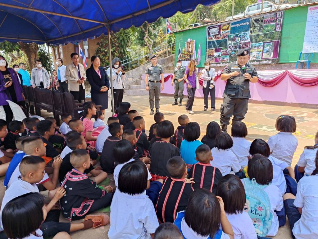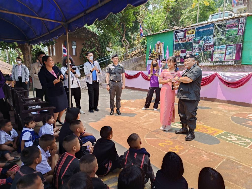 เมื่อ 28 มี.ค.66 เวลา 12.10 น. พล.ต.ต.ประกอบ พลเตชา ผบก.ตชด.ภาค 3 พร้อมคณะติดตามหนุนเสริมและสะท้อนผลการดำเนินงาน รร.ตชด. ในพื้นที่ จ.เชียงใหม่ ตรวจเยี่ยมติดตามการดำเนินงานโครงการจัดกระบวนการเรียนการสอน การจัดกระบวนการเรียนรู้และการจัดทำหลักสูตรสถานศึกษา ณ รร.ตชด.เฮียงไทยธำรงค์ ต.แม่สาว อ.แม่อาย จ.เชียงใหม่ โดยมี พ.ต.ท.วัชรินทร์ ยศรุ่งโรจน์ ครู(สบ.3) กก.ตชด.33 พ.ต.ต.วรวุฒิ นามมล ครู(สบ.2) กก.ตชด.33 และคณะครูร่วมให้การต้อนรับ