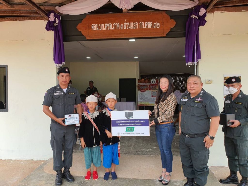 3.นำผู้บริจาคสิ่งของคือ เครื่องผลิตอนุพันธ์ออกซิเจน เพื่อกำจัดฝุ่น pm 2.5 และค่าเชื้อโควิด มามอบให้ รร.ตชด. 6 รร.คือ