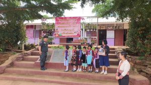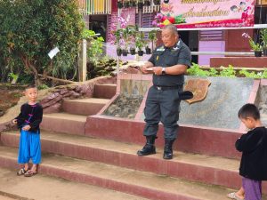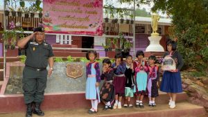 และมอบหน้ากากอนามัย และ ยาเวชภัณฑ์ พร้อมแนะนำการติดตั้งโปรแกรมติวโอเน็ต ’66 ให้กับทาง โรงเรียนด้วย และได้นำ ด.ต.หญิงดาริกา ปัญญาเตียม ครูใหญ่ รร.ตชด.เทคนิคดุสิต มาเยี่ยมชมพิพิธภัณฑ์ หอพลับพลาเจ้าดารารัศมี เชียงราย เพื่อติดต่อนำวิทยากรจากหอพลับพลาฯ มาสอนการทำผ้าพิมพ์ลายใบไม้ เพื่อไปสอน นร.รร.ตชด.ในโครงการฝึกอาชีพต่อไป