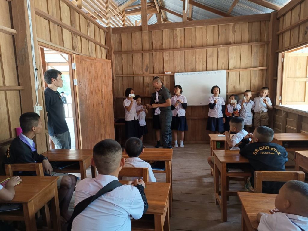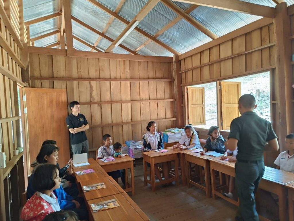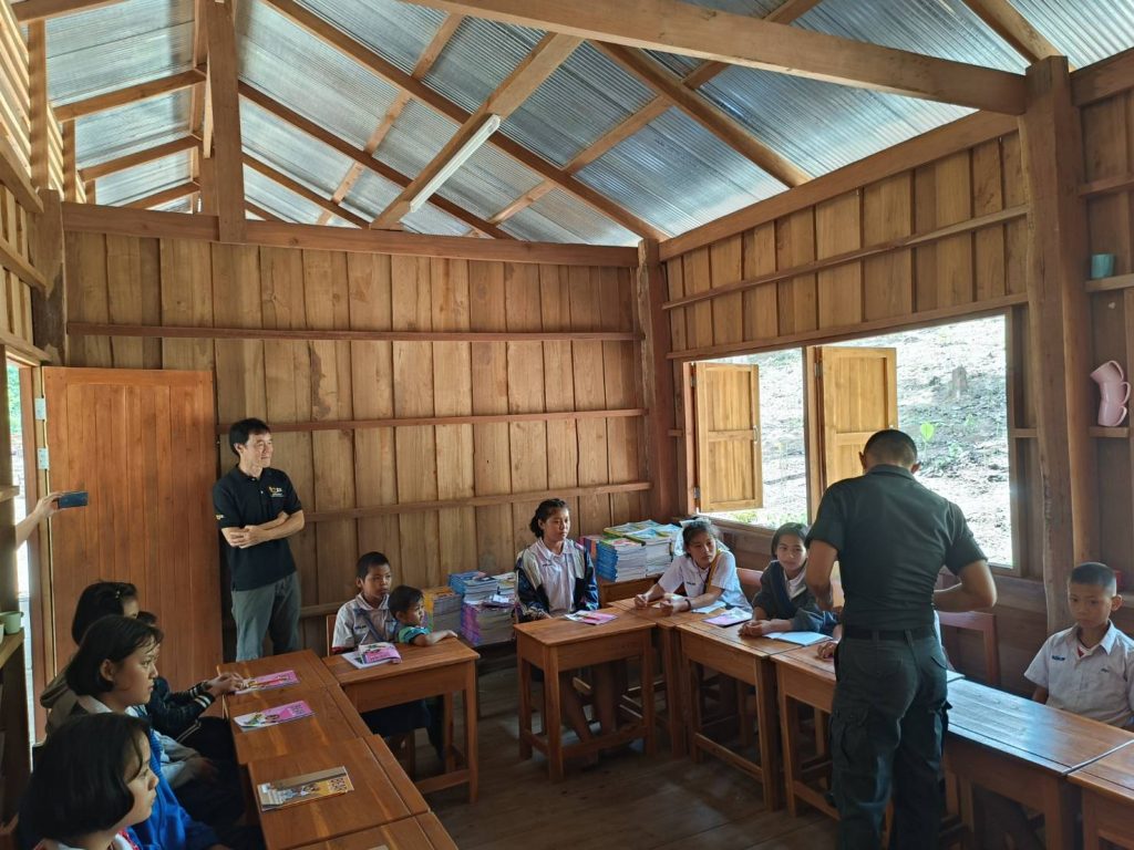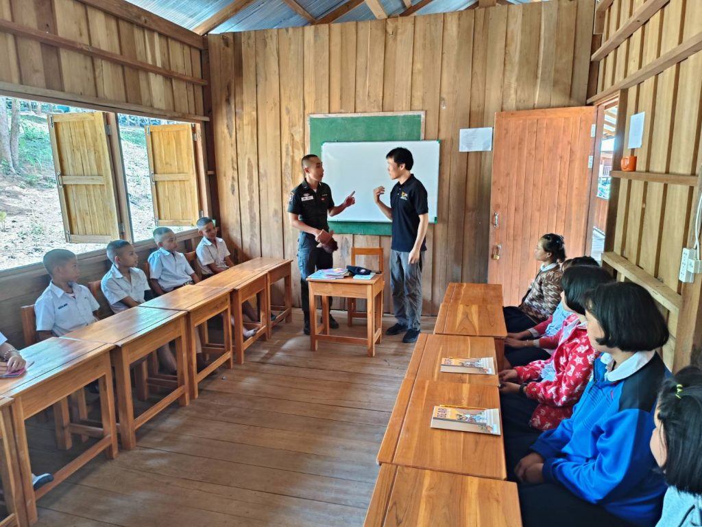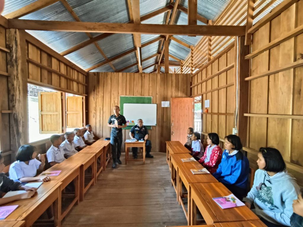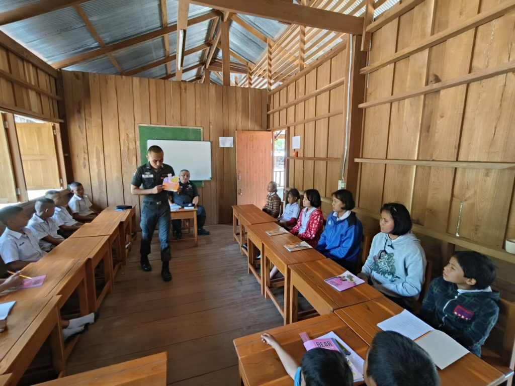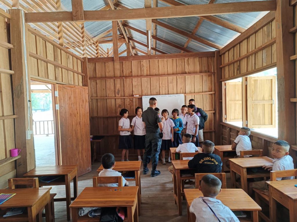 เมื่อ 22 พ.ค.66 เวลา 11.15 น. พล.ต.ต.ประกอบ พลเตชา ผบก.ตชด.ภาค 3 พร้อมด้วย ดร.วิทย์ สุนทรนันท์ รองประธานมูลนิธิพุทธรักษา พ.ต.อ.ประกฤติ ยามานนท์ ที่ปรึกษามูลนิธิพุทธรักษา พ.ต.ต.วรวุฒิ นามมล ครู(สบ 2) กก.ตชด.33 ตรวจเยี่ยม รร.ตชด.905 บ.จอปร่าคี ต.แม่คง อ.แม่เสรียง จว.แม่ฮ่องสอน เพื่อติดตามการดำเนินงานโครงการพัฒนาคุณภาพครูตำรวจตระเวนชายแดนผู้สอนวิชาภาษาอังกฤษ โดยคณะได้ร่วมรับฟังบรรยายสรุป ชมการเรียนการสอน ติดตามการจัดการเรียนการสอน พร้อมให้คำแนะนำ แนวทางในการแก้ไขการจัดการเรียน การสอนวิชาภาษาอังกฤษดังกล่าว และในโอกาสนี้ ผบก.ตชด.ภาค 3 ได้มอบหน้ากากอนามัยให้แก่เด็กนักเรียน โดยมี พ.ต.ต.ธีรภัทร หนูแก้ว ผบ.ร้อย 337 ด.ต.ปฏิญญา นุดู ครูใหญ่และคณะครูร่วมให้การต้อนรับ