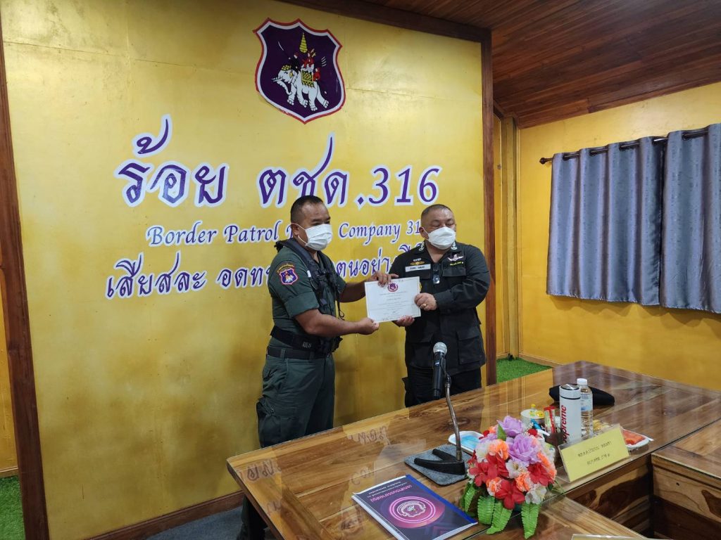 เมื่อ 141310 ต.ค.65 พล.ต.ต.ประกอบ พลเตชา ผบก.ตชด.ภาค 3 เดินทางไปตรวจเยี่ยมกำลังพล รับฟังบรรยายสรุป พร้อมทั้งให้โอวาท มอบนโยบายการปฏิบัติงานที่รับมอบมาจาก ผบ.ตร., ผบช.ตชด. กำชับเร่งรัดการระดมกวาดล้างยาเสพติด อาชญากรรมทุกประเภท ห้ามมิให้ข้าราชการตำรวจเข้าไปยุ่งเกี่ยวกับสิ่งผิดกฎหมายและได้มอบประกาศเกียรติคุณให้แก่ข้าราชการตำรวจปฏิบัติหน้าที่จังหวัดชายแดนภาคใต้ ณ กองร้อย ตชด.316 อ.น้ำปาด จ.อุตรดิตถ์ โดยมี พ.ต.อ.วิศาลพงศ์ สร้อยกุลบดี ผกก.ตชด.31 พ.ต.ท.นฤบดินทร์ สินธรานพ ผบ.ร้อย ตชด.316 และข้าราชการตำรวจให้การต้อนรับ