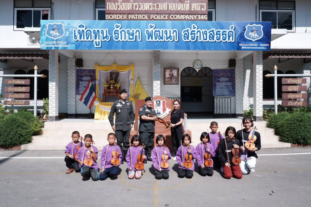 เมื่อ 26 พ.ย.65 เวลา 09.45 น. พล.ต.ต ประกอบ พลเตชา ผบก.ตชด.ภาค 3, พ.ต.ท.รัฐกร อินทนิล รอง ผกก.ตชด.34 ต้อนรับอาจารย์ วัชรินทร์ รุ่งนาค และคณะวิทยากรโครงการผลิตสเปรย์ตะไคร้หอมป้องกันยุงให้กับนักเรียนโรงเรียนตำรวจตระเวนชายแดน พร้อมตรวจเยี่ยมการอบรมดนตรีไวโอลีน ให้กำลังใจครูผู้สอน นักเรียนโรงเรียนตำรวจตระเวนชายแดนที่มาอบรมดังกล่าว ณ กองร้อย ตชด.346 ม.1 บ.แม่ตาว ต.ท่าสายลวด อ.แม่สอด จ.ตาก ทั้งนี้เพื่อเป็นการขยายผลต่อยอดและสนองงานตามพระราชดำริในงานด้านการดนตรี และ ผบก.ตชด.ภาค 3 ได้มอบตู้แช่ จำนวน 1 ตู้ ให้แก่ รร.ตชด.บ้านตีนดอย โดยมี ด.ต.ครรชิต บัวขาว ครูใหญ่ เป็นผู้รับมอบ