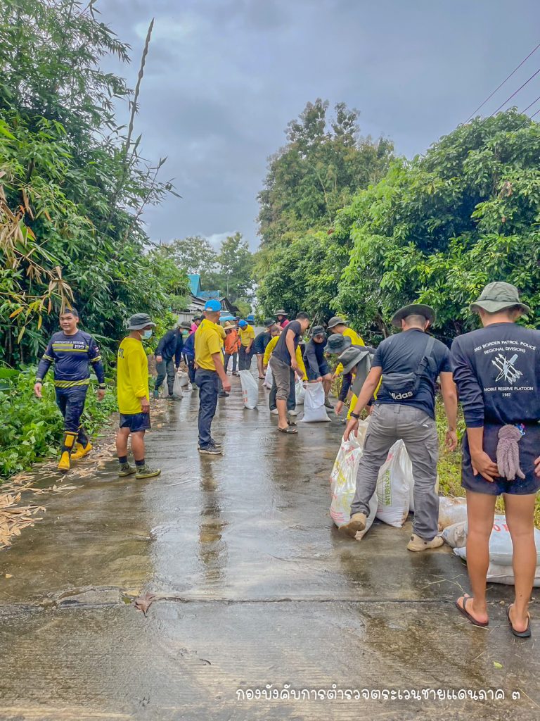 เมื่อ 3 ต.ค. 65 เวลา 10.30 น. พ.ต.ท.สุทธิพร  นันตา รอง ผกก.ฝอ.บก. ตชด.ภาค3 และ พ.ต.ต.วิวัฒน์ชัย จันทรบูรณ์ สว.ฝอ.บก.ตชด.ภาค 3 (จอส.) พร้อมข้าราชการตำรวจ บก.ตชด.ภาค 3 ร่วมกับประชาชนฯ ทำแนวกันน้ำล้นตลิ่งแม่น้ำปิง บริเวณ หมู่ที่1 บ้านป่าจี้ ต.อินทขิล อ.แม่แตง จ.เชียงใหม่