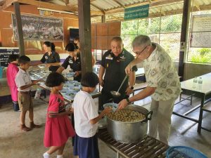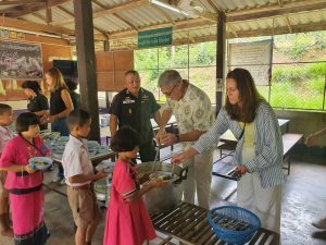 เมื่อ 4 ก.ค.66 เวลา 10.00 น. พล.ต.ต.ประกอบ พลเตชา ผบก.ตชด.ภาค 3 นำคณะรองผู้ช่วยทูต สหรัฐอเมริกา ประกอบด้วย นายชัค บัตเลอร์ จากหน่วย NCIS และ นายอารอน แมคเซลส์ จาก Homeland Security มาตรวจเยี่ยม และเลี้ยงอาหารกลางวัน ให้กับ นักเรียนโรงเรียนตำรวจตระเวนชายแดนพ่อหลวงอุปถัมป์ 2