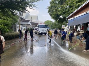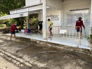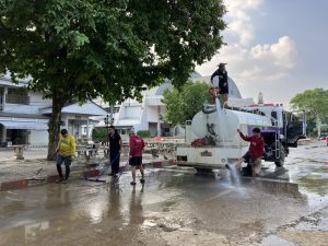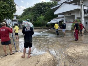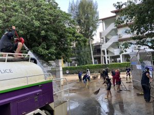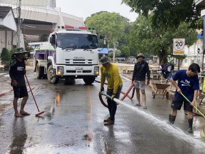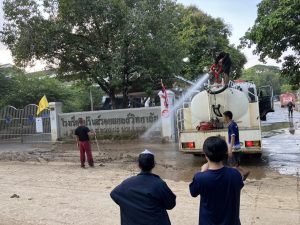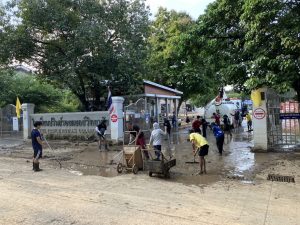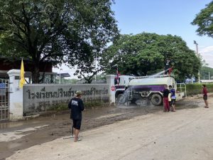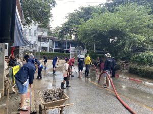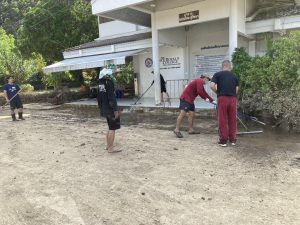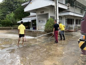 วันที่ 12 ต.ค.67 เวลา 09.00 น.- 17.00 น. พล.ต.ต.วรพัฒน์ บุญมา ผบก.ตชด.ภาค 3 มอบหมายให้ พ.ต.ท.สุทธิพร นันตา รอง ผกก.ฝอ.ฯ พร้อมด้วยข้าราชการตำรวจ ฝอ.ฯ 1 ชป.จำนวน 12 นาย รยบ. 6 ล้อ 1 คัน และรถบรรทุกน้ำ 2 คัน ออกช่วยเหลือประชาชนที่ประสบอุทกภัย ร่วมกับข้าราชการตำรวจสังกัด ตม.จว.เชียงใหม่ เข้าช่วยเหลือ ฉีดล้างดินโคลน ทำความสะอาด บ้านประชาชน พื้นที่ ตำบล ดอนแก้ว อำเภอ สารภี จ.เชียงใหม่ ร่วมกับ อบจ.เชียงใหม่ เข้าฉีดล้างดินโคลน ทำความสะอาด บริเวณพื้นอาคาร ลานจอดรถ และถนนภายในโรงเรียนปรินส์รอยแยลส์วิทยาลัย ต.ช้างม่อย อ.เมือง จ.เชียงใหม่