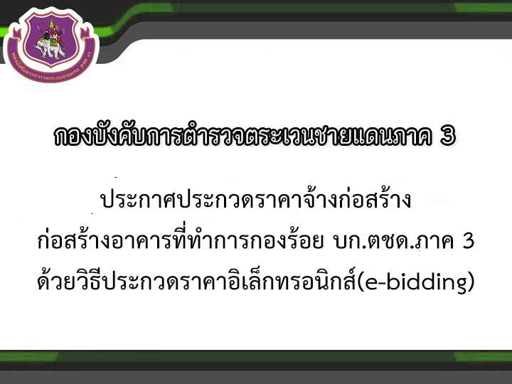 ประกาศ บก.ตชด.ภาค 3 เรื่อง ประกวดราคาจ้างก่อสร้างอาคารที่ทำการกองร้อย ด้วยวิธี (e-bidding)