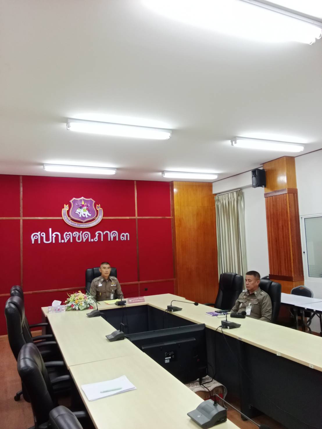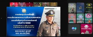 เมื่อ 29 พ.ค.68 เวลา 13.30 น. ตร.จัดประชุมขับเคลื่อนการบริหารราชการงานสืบสวนสอบสวน ผ่านระบบ Zoom ณ ห้องประชุม TOC ศปก.ตร.ชั้น 20 อาคาร 1 ตร. โดยมี พล.ต.อ.ธนา ชูวงศ์ รอง ผบ.ตร. (สส) เป็นประธานการประชุม บก.ตชด.ภาค 3 พ.ต.อ.วิศาลพงศ์ สร้อยกุลบดี รอง ผบก.ตชด.ภาค 3 และ พ.ต.ท.สุขสันต์ อินทร์สุข สว.ฝอ.บก.ตชด.ภาค 3 (ขว.) เข้าร่วมเฝ้าฟัง ณ ที่ตั้งหน่วย