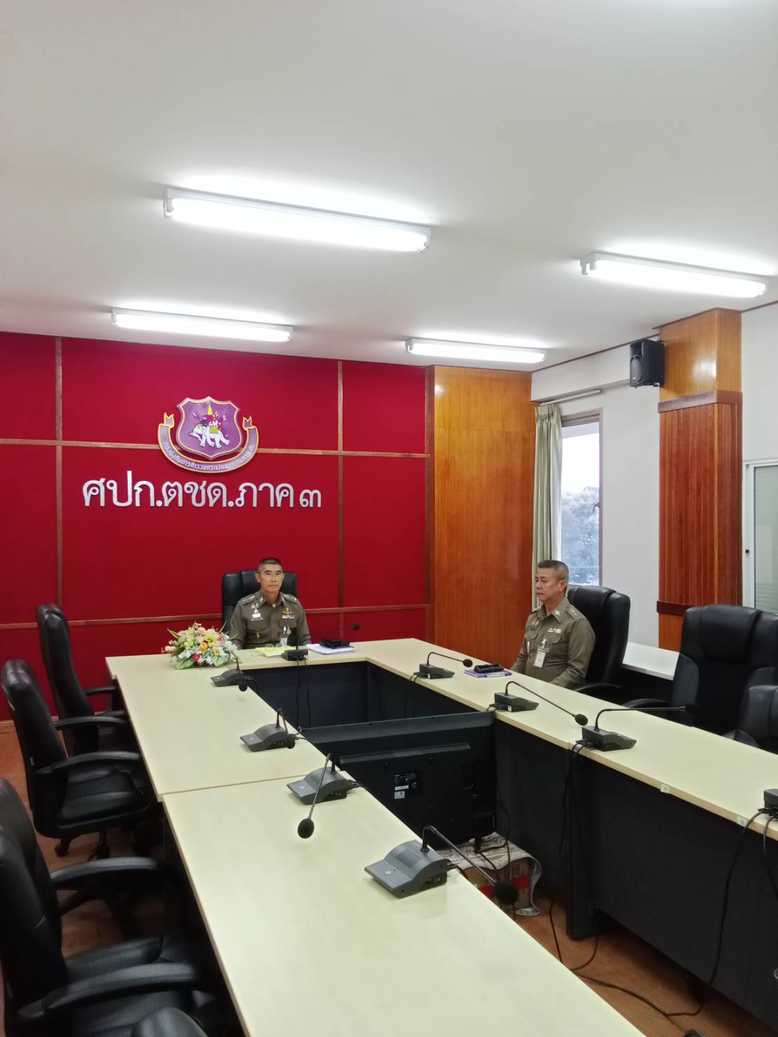เมื่อ 23 ก.ย.68 เวลา 10.00 น. ตร.จัดประชุมขับเคลื่อนการบริหารราชการงานสืบสวนสอบสวน ผ่านระบบ Zoom ณ ห้องศรียานนท์ ชั้น 2 อาคาร 1 ตร. โดยมี พล.ต.อ.ธนา ชูวงศ์ รอง ผบ.ตร. (สส) เป็นประธานการประชุม บก.ตชด.ภาค 3 พ.ต.อ.วิศาลพงศ์ สร้อยกุลบดี รอง ผบก.ตชด.ภาค 3 และ พ.ต.ท.สุขสันต์ อินทร์สุข สว.ฝอ.บก.ตชด.ภาค 3 (ขว.) เข้าร่วมเฝ้าฟัง ณ ที่ตั้งหน่วย