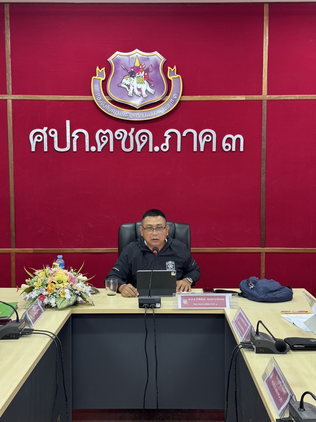 พ.ต.อ.รังสิมันต์ สงเคราะห์ธรรม รอง ผบก.ตชด.ภาค 3 เป็นประธานการประชุมขับเคลื่อนและมอบนโยบาย การปฏิบัติ ศอ.ปส.บก.ตชด.ภาค 3 ครั้งที่ 12/2568 โดยมี พ.ต.ท.สุขสวัสดิ์ ไชยสาร รอง ผกก.ฝอ.บก.ตชด.ภาค 3, พ.ต.ท.สุขสันต์ อินทร์สุข สว.ฝอ.บก.ตชด.ภาค 3 (ขว.), พ.ต.ท.วิมาณ ฉิมพล หน.ศอ.ปส.บก.ตชด.ภาค 3, พ.ต.ต.อนัญวัฒน์ รัตนวิชัย ผบ.ร้อย ตชด.327 เข้าร่วมประชุมและผู้แทน กก.ตชด.31-34, ร้อย ตชด.314-347 เข้าร่วมประชุมผ่านระบบ zoom meeting
