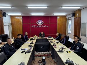 พ.ต.อ.รังสิมันต์ สงเคราะห์ธรรม รอง ผบก.ตชด.ภาค 3 เป็นประธานการประชุมขับเคลื่อนและมอบนโยบาย การปฏิบัติ ศอ.ปส.บก.ตชด.ภาค 3 ครั้งที่ 12/2568 โดยมี พ.ต.ท.สุขสวัสดิ์ ไชยสาร รอง ผกก.ฝอ.บก.ตชด.ภาค 3, พ.ต.ท.สุขสันต์ อินทร์สุข สว.ฝอ.บก.ตชด.ภาค 3 (ขว.), พ.ต.ท.วิมาณ ฉิมพล หน.ศอ.ปส.บก.ตชด.ภาค 3, พ.ต.ต.อนัญวัฒน์ รัตนวิชัย ผบ.ร้อย ตชด.327 เข้าร่วมประชุมและผู้แทน กก.ตชด.31-34, ร้อย ตชด.314-347 เข้าร่วมประชุมผ่านระบบ zoom meeting