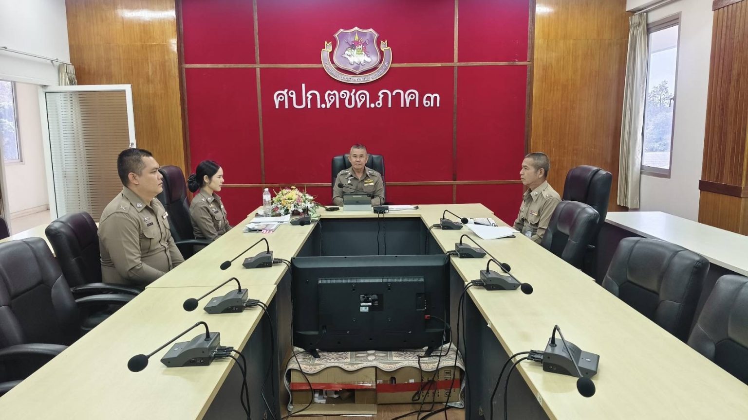 เมื่อ 27 ม.ค.69 เวลา 13.30 น. พ.ต.อ.อภิชาติ รักพงษ์ รอง ผบก.ตชด.ภาค 3 พร้อมด้วย พ.ต.ต.หญิง ฐมนต์วรรณ ทิพย์อักษรสว.ฝอ.บก.ตชด.ภาค 3(จอส.) พร้อมเจ้าหน้าที่ที่เกี่ยวข้อง ประชุมคณะกรรมการพิจารณาผลงานการประกวดผลงานเศรษฐกิจพอเพียง ประจำปี 2569 ของ บช.ตชด.ครั้งที่ 1/2569 ผ่านระบบออนไลน์ (Zoom meeting) ณ ห้องประชุม ศปก.