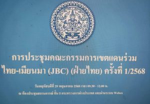 เมื่อ 29 พ.ค.68 เวลา 09.30 – 10.30 น. พล.ต.ต.วรพัฒน์  บุญมา เป็นผู้แทนหน่วย บช.ตชด. พร้อมด้วย พ.ต.อ.ศุภวัฒน์ ศรีชัยชนะ      รอง ผบก.ตชด.ภาค 3, สว.ฝอ.บก.ตชด.ภาค 3 (ขว.) และเจ้าหน้าที่ที่เกี่ยวข้อง เข้าร่วมประชุมทางไกลผ่านระบบ webex เรื่อง การประชุมคณะกรรมการเขตแดนร่วม (JBC) ฝ่ายไทย ครั้งที่ 1/2568 โดยมี นายดุสิต เมนะพันธุ์ ที่ปรึกษารัฐมนตรีว่าการกระทรวงต่างประเทศ เป็นประธาน ณ ห้องประชุม ศปก.ตชด.ภาค 3