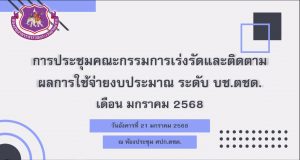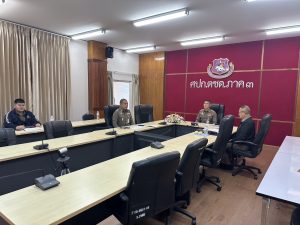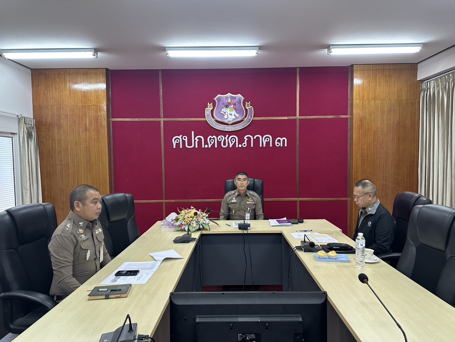 พ.ต.อ.วิศาลพงศ์ สร้อยกุลบดี รอง ผบก.ตชด.ภาค 3 ,พ.ต.ท.สุขสวัสดิ์ ไชยสาร รอง ผกก.ฝอ.บก.ตชด.ภาค 3 , สว.ฝอ.บก.ตชด.ภาค 3 (ผงป.) พร้อมด้วยเจ้าหน้าที่งานที่เกี่ยวข้อง เข้าร่วมประชุมทางไกล (video conference) การประชุมคณะกรรมการเร่งรัดและติดตามผลการใช้จ่ายงบประมาณ ระดับ บช.ตชด. เดือนมกราคม 2568 โดยมี พล.ต.ท.นิตินัย หลังยาหน่าย ผบช.ตชด. เป็นประธาน
