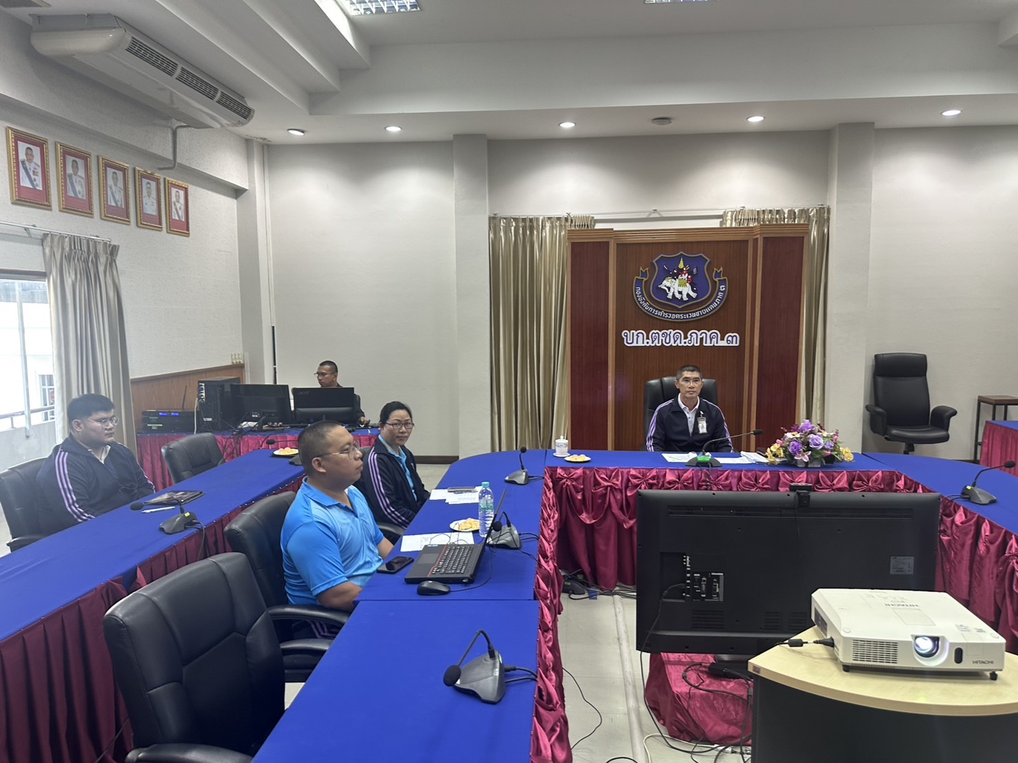 พ.ต.อ.อภิชาติ รักพงษ์ รอง ผบก.ตชด.ภาค 3 , ร.ต.อ. อนุสรณ์ ปัญญา รอง สว.ฝอ.บก.ตชด.ภาค 3 พร้อมด้วยเจ้าหน้าที่งานที่เกี่ยวข้อง เข้าร่วมประชุมทางไกล (video conference) การประชุมคณะกรรมการเร่งรัดและติดตามผลการใช้จ่ายงบประมาณ ระดับ บช.ตชด. ประจำเดือน สิงหาคม 2568 โดยมี พล.ต.ท.นิตินัย หลังยาหน่าย ผบช.ตชด. เป็นประธาน