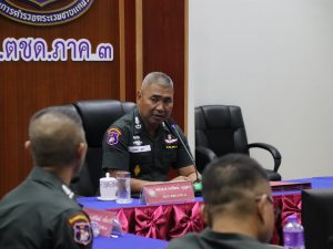 เมื่อ 26 ก.ย.67 เวลา 09.30 น. พล.ต.ต.วรพัฒน์ บุญมา ผบก.ตชด.ภาค3 เป็นประธาน ประชุมถอดบทเรียนการช่วยเหลือผู้ประสบอุทกภัย พร้อมด้วย รอง ผบก. ภาค 3, ผกก.ตชด.31 – 34, ผบ.ร้อย ตชด. ที่ 4-7(กก.ตชด.31-34), ณ ห้องดารารัศมี 3 บก.ตชด.ภาค 3