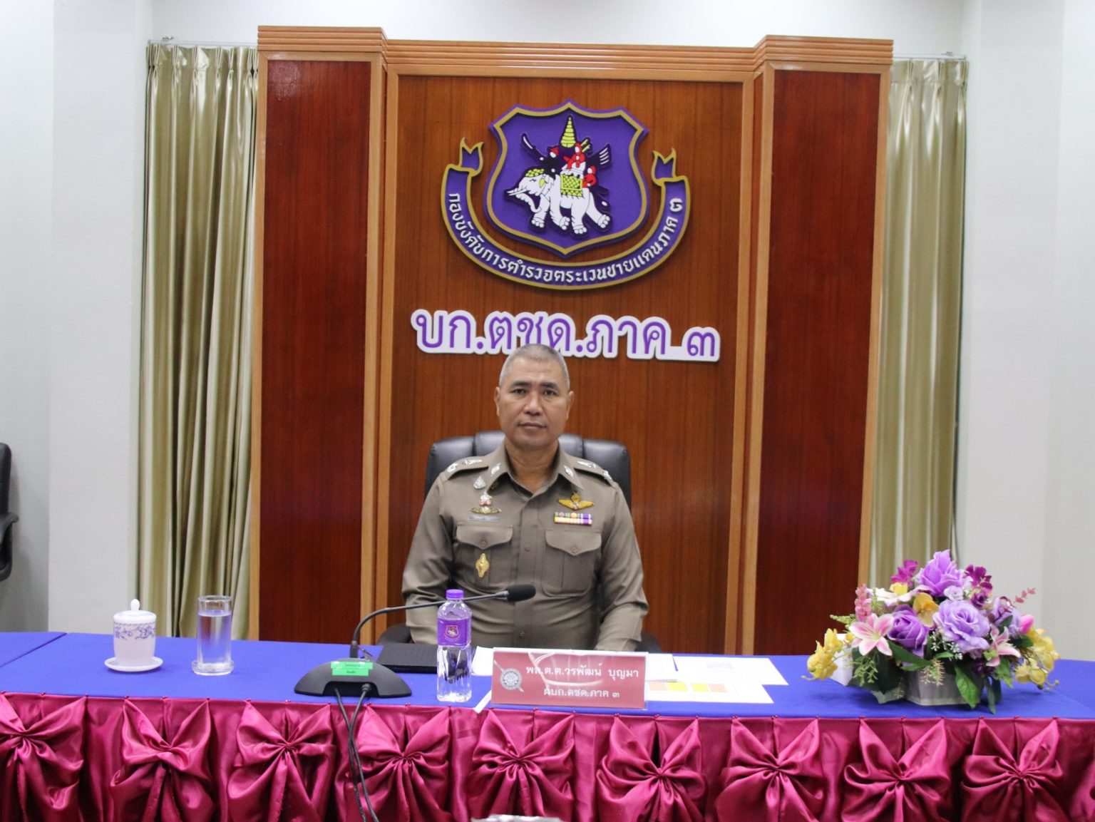 เมื่อ 2 ส.ค.67 เวลา 09.00 น. พล.ต.ต.วรพัฒน์ บุญมา ผบก.ตชด.ภาค3 เป็นประธาน การประชุมบริหาร บก.ตชด.ภาค 3 ครั้งที่ 10/2567 พร้อมด้วย รอง ผบก. ภาค 3, ผกก.ตชด.31 – 34, ผกก. 5 บก.กฝ.ฯ, ผกก. 6 บก.กฝ.ฯ, รอง ผกก. ฝอ.ฯ(1-3), ผบ.ร้อย ตชด. ที่ 4-7(กก.ตชด.31-34), สว.(ขว. และ ผงป.) กก.ตชด.31-34, สว.ฝอ.ฯ และ ผบ.ร้อย สสน.ฯ ณ ห้องดารารัศมี 3 บก.ตชด.ภาค 3