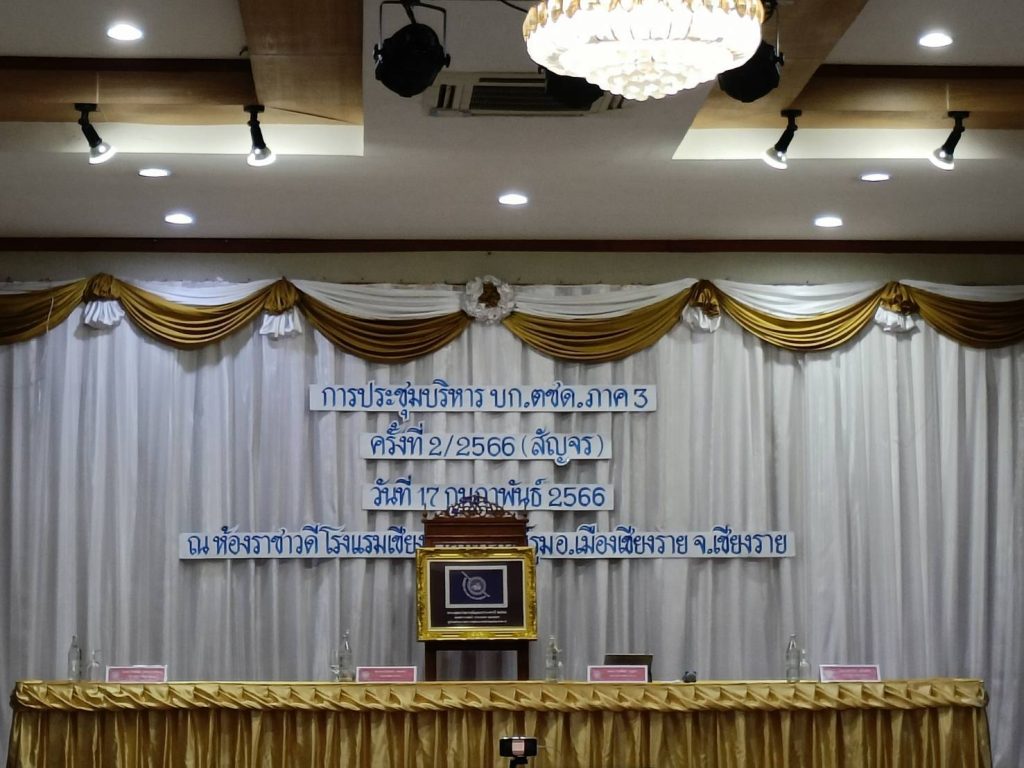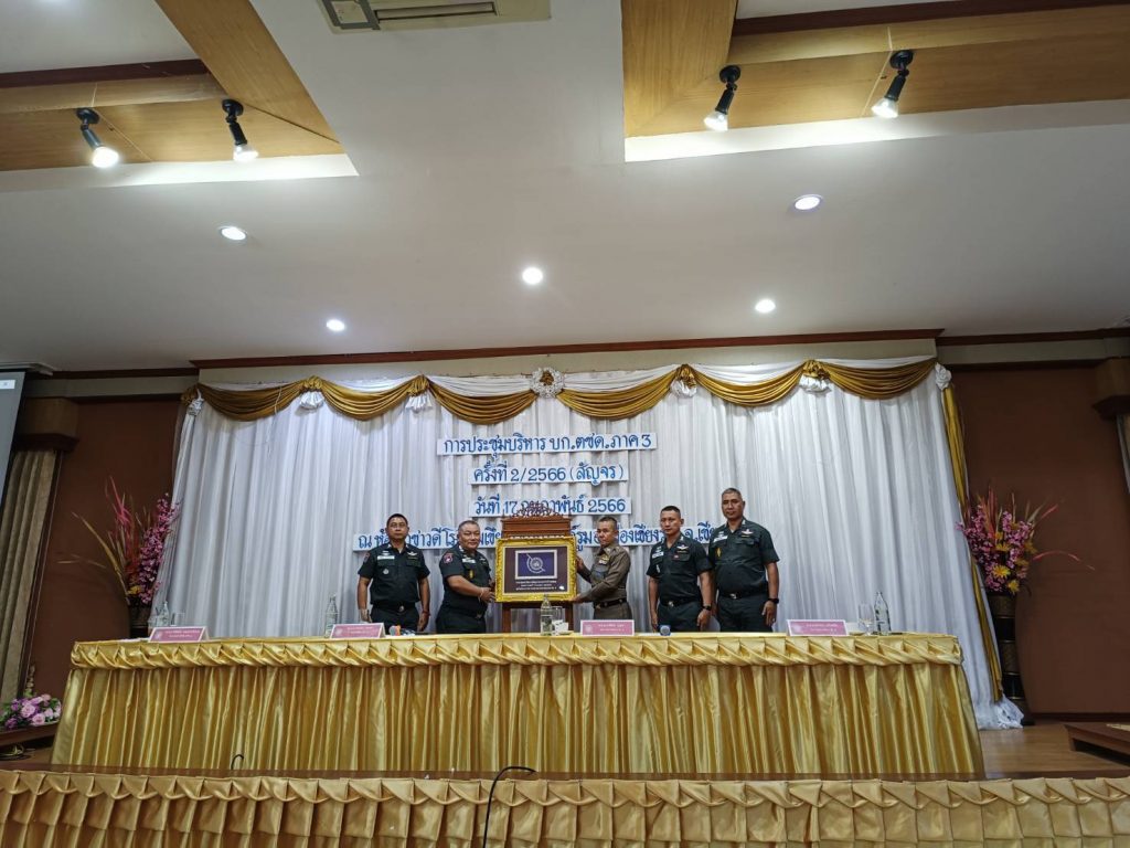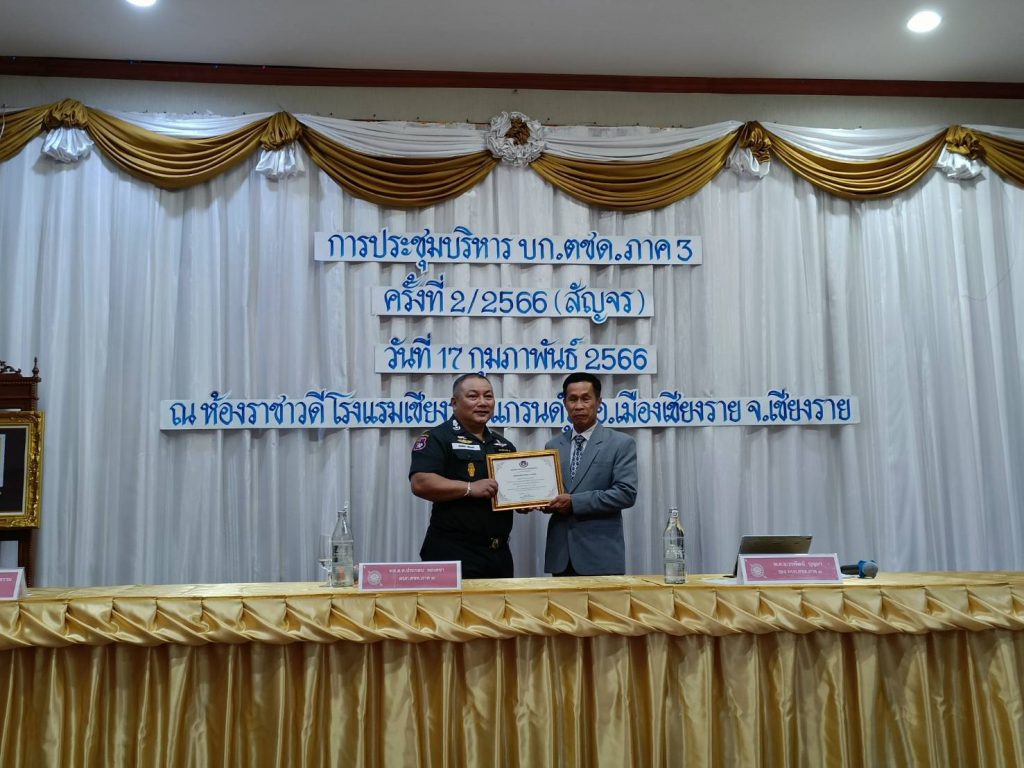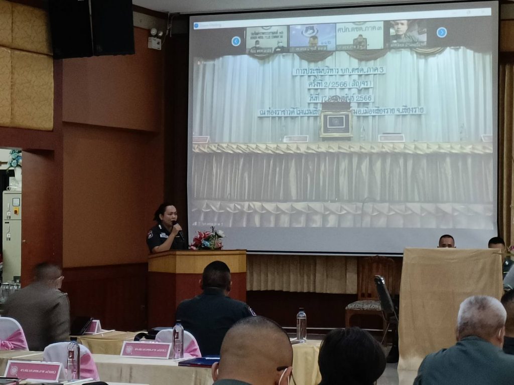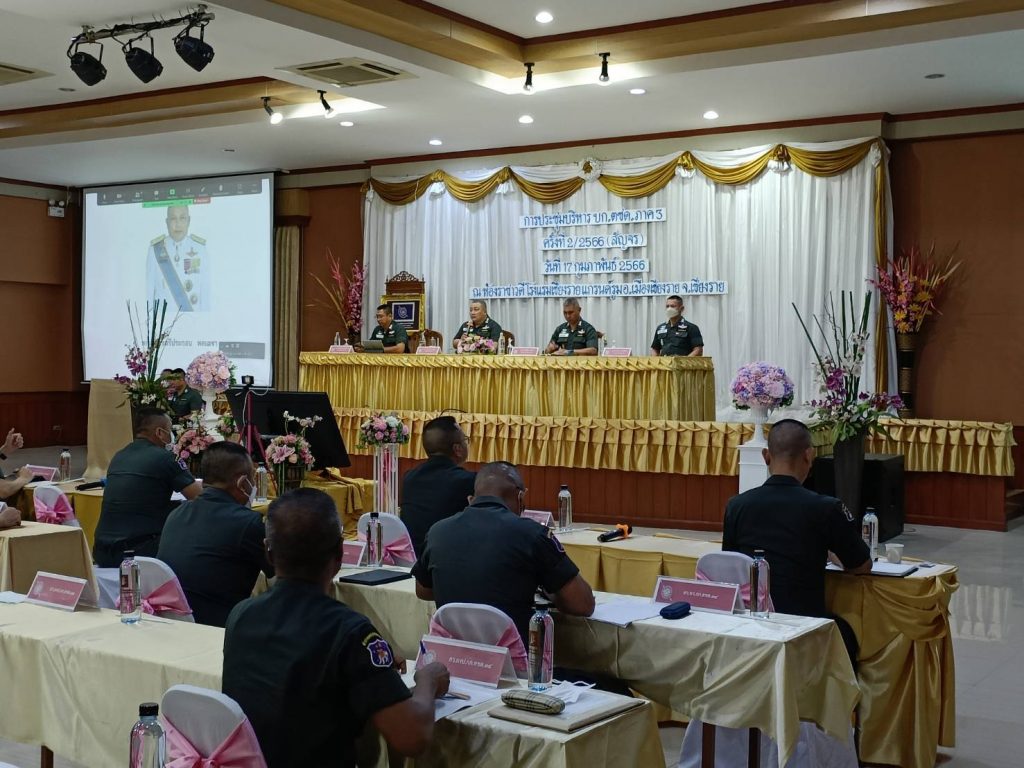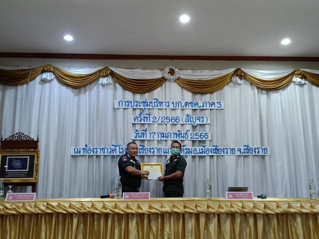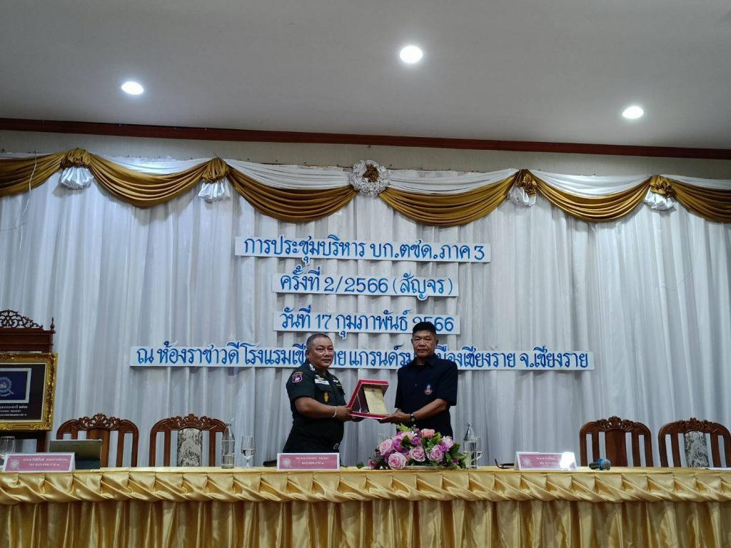 เมื่อ 17 ก.พ.66 เวลา 09.00 น. พล.ต.ต.ประกอบ พลเตชา ผบก.ตชด.ภาค 3 ประธานการประชุมบริหาร บก.ตชด.ภาค 3 ครั้งที่ 2/2566(สัญจร) โดยมี พ.ต.อ.วรพัฒน์ บุญมา รอง ผบก.ตชด.ภาค 3, พ.ต.อ.รังสิมันต์ สงเคราะห์ธรรม รอง ผบก.ตชด.ภาค 3, พ.ต.อ.สถาพร แก้วสนิท รอง ผบก.ตชด.ภาค 3, ผกก.ฝอ.บก.ตชด.ภาค 3, ผกก.ตชด.31-34 , รอง ผกก.ฝอ.ฯ, สว., ผบ.ร้อย ในสังกัด บก.ตชด.ภาค 3 เข้าร่วมประชุม ณ ห้องประชุมราชาวดี โรงแรมเชียงรายแกรนด์รูม อ.เมือง จ.เชียงราย และมี พ.ต.อ.อพิวัฒน์ กลั่นวารี รอง ผบก.ตชด.ภาค 3, พ.ต.อ.วิศาลพงศ์ สร้อยกุลบดี รอง ผบก.ตชด.ภาค 3, ครู รร.ตชด. ในสังกัด เข้าร่วมประชุมผ่านระบบออนไลน์ การประชุมในครั้งนี้ได้มีการมอบโล่และประกาศเกียรติคุณให้กับหน่วยในสังกัดที่มีผลการปฏิบัติงานทางด้านการปราบปรามอาชญากรรมตามแนวชายแดนดีเด่นและโครงการครูคนแรกในสังกัด กด.ตชด.32 จำนวน 2 นาย