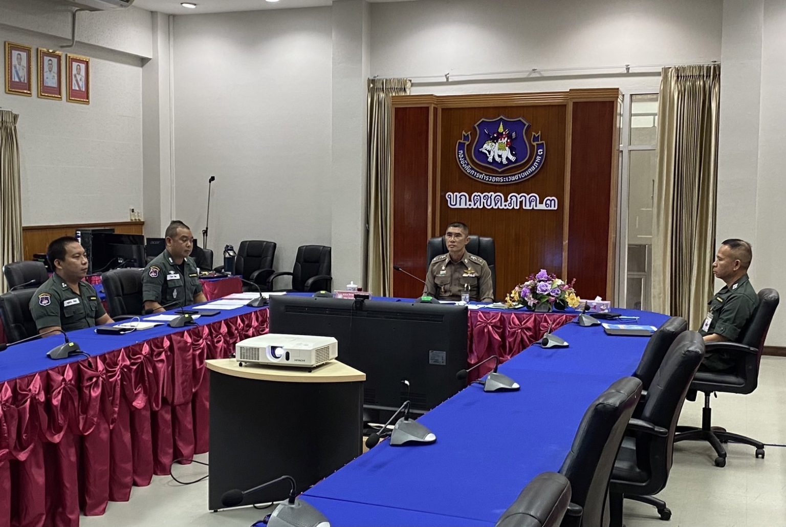 เมื่อ 25 มิ.ย.67 เวลา 10.00 น. พ.ต.อ.วิศาลพงศ์ สร้อยกุลบดี รอง ผบก.ตชด.ภาค 3/ประธานการประชุมฯ และ พ.ต.ท.สุขสวัสดิ์ ไชยสาร รอง ผกก.ฝอ.บก.ตชด.ภาค 3 พร้อมด้วยส่วนที่เกี่ยวข้อง ประชุมยกร่างแผนปฏิบัติราชการ บช.ตชด. ประจำปีงบประมาณ พ.ศ.2568 กับหน่วย กก.ตชด.31 – 34 ผ่านระบบ Video Conference