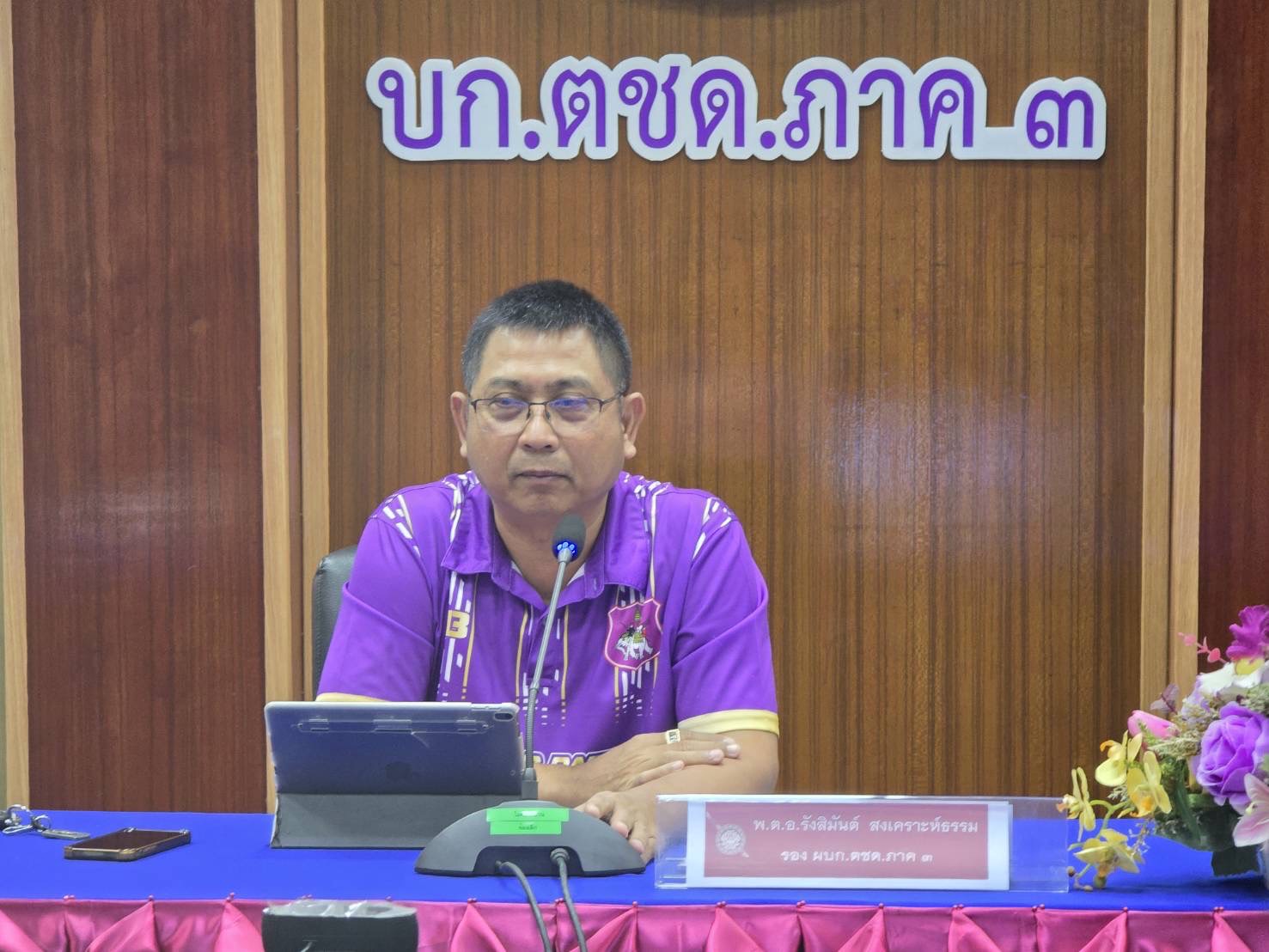 พ.ต.อ.รังสิมันต์ สงเคราะห์ธรรม รอง ผบก.ตชด.ภาค 3 ,พ.ต.ท.สุขสวัสดิ์ ไชยสาร รอง ผกก.ฝอ.บก.ตชด.ภาค 3 ,พ.ต.ท.สุขสันต์ อินทร์สุข สว.ฝอ.ฯ(ขว.) ,ว่าที่ พ.ต.ท.วิมาณ ฉิมพล สว.ฝอ.ฯ/หน.ศอ.ปส.ฯ พร้อมเจ้าหน้าที่ ศอ.ปส.บก.ตชด.ภาค 3 ร่วมประชุมทางไกล (video conference) สรุปผลการปฏิบัติ ศอ.ปส.ในสังกัด บก.ตชด.ภาค 3 ครั้งที่ 6 โดยมี รอง ผกก.ตชด.31 – 34 และ ผบ.ร้อย กก.ตชด.31-34(กองร้อยปฏิบัติการ) เข้าร่วมประชุม