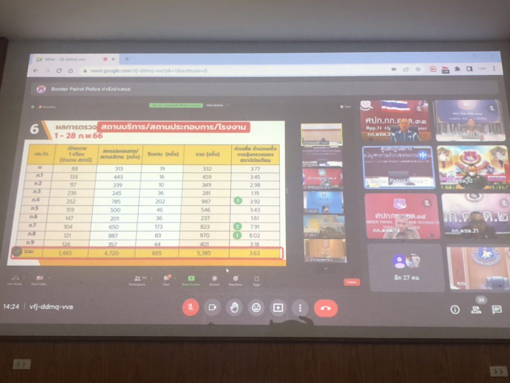 เมื่อ 8 มี.ค. 66 เวลา 13.30 น. พ.ต.อ.รังสิมันต์ สงเคราะห์ธรรม รอง ผบก.ตชด.ภาค 3, พ.ต.ท.บัณฑิต สีหาโคตร รอง ผกก.ตชด.33, พ.ต.ท.ณภัทร ชะวาลา รรท.ผบ.ร้อย ตชด.334 พร้อมเจ้าหน้าที่ในส่วนที่เกี่ยวข้องฯ เข้าร่วมประชุม การปฎิบัติงานป้องกันปราบปรามและแก้ไขปัญหายาเสพติด (ศอ.ปส.ตร.) ครั้งที่ 5/2566 ผ่านสื่ออิเล็กทรอนิกส์ระบบ Video Conferrence (Zoom Cloud Meetings) ณ กองร้อยตำรวจตระเวนชายแดนที่ 334 อ.แม่อาย จว.เชียงใหม่ โดยมี พล.ต.อ.ดำรงศักดิ์ กิตติประภัสร์ ผบ.ตร. เป็นประธานในการประชุมฯ