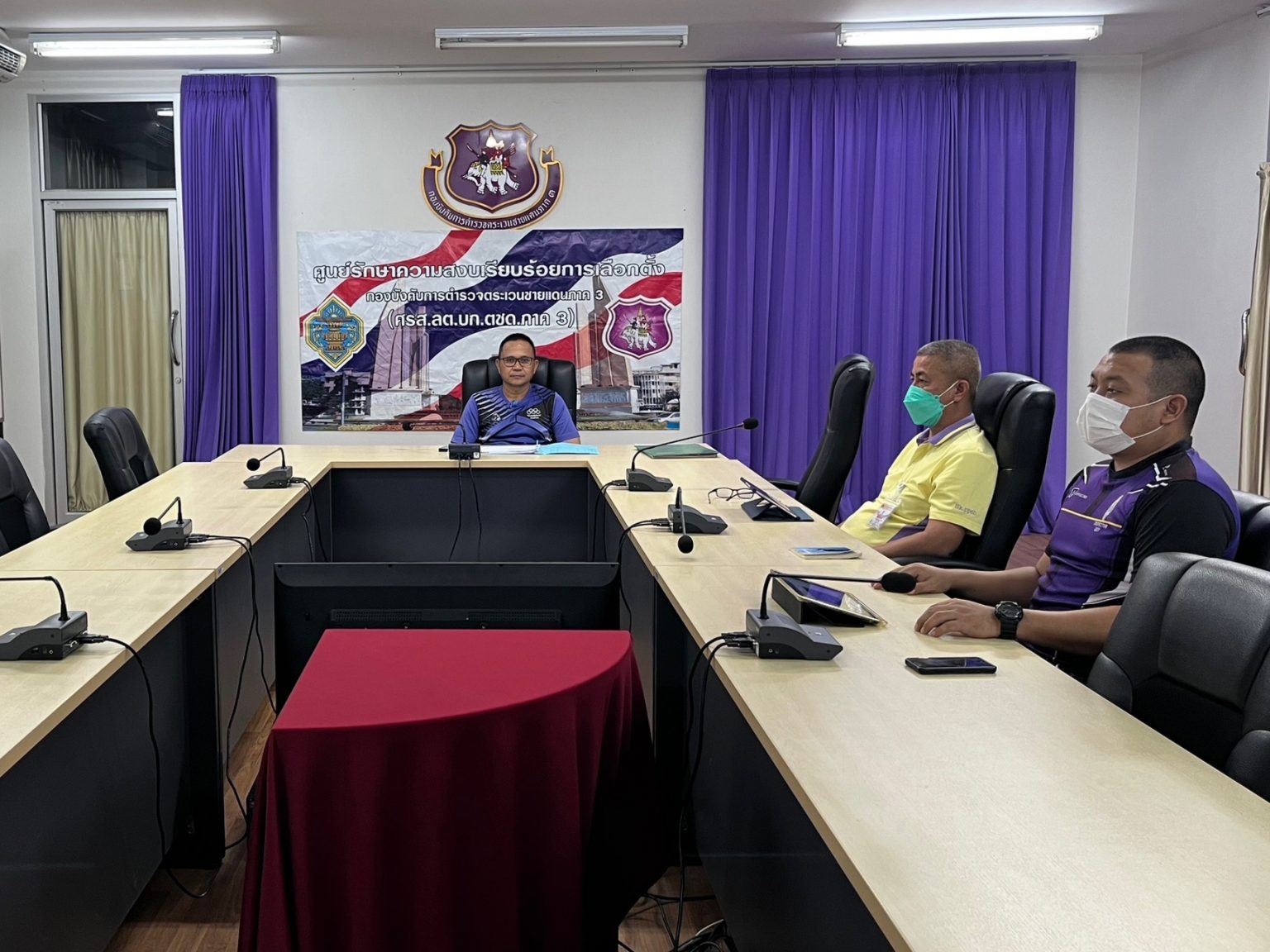 เมื่อ 26 เม.ย.66 เวลา 15.00 น. พ.ต.อ.บันดาล บัวแดง ผกก.ฝอ.บก.ตชด.ภาค 3 พร้อมด้วย จนท.ฝอ.ฯ เข้าร่วมการประชุม ศลต.ตร. ผ่านระบบการประชุมทางไกลผ่านจอภาพ (Video Conference) ณ ห้องประชุม ดารารัศมี 2 (ศรส.ลต.บก.ตชด.ภาค 3)