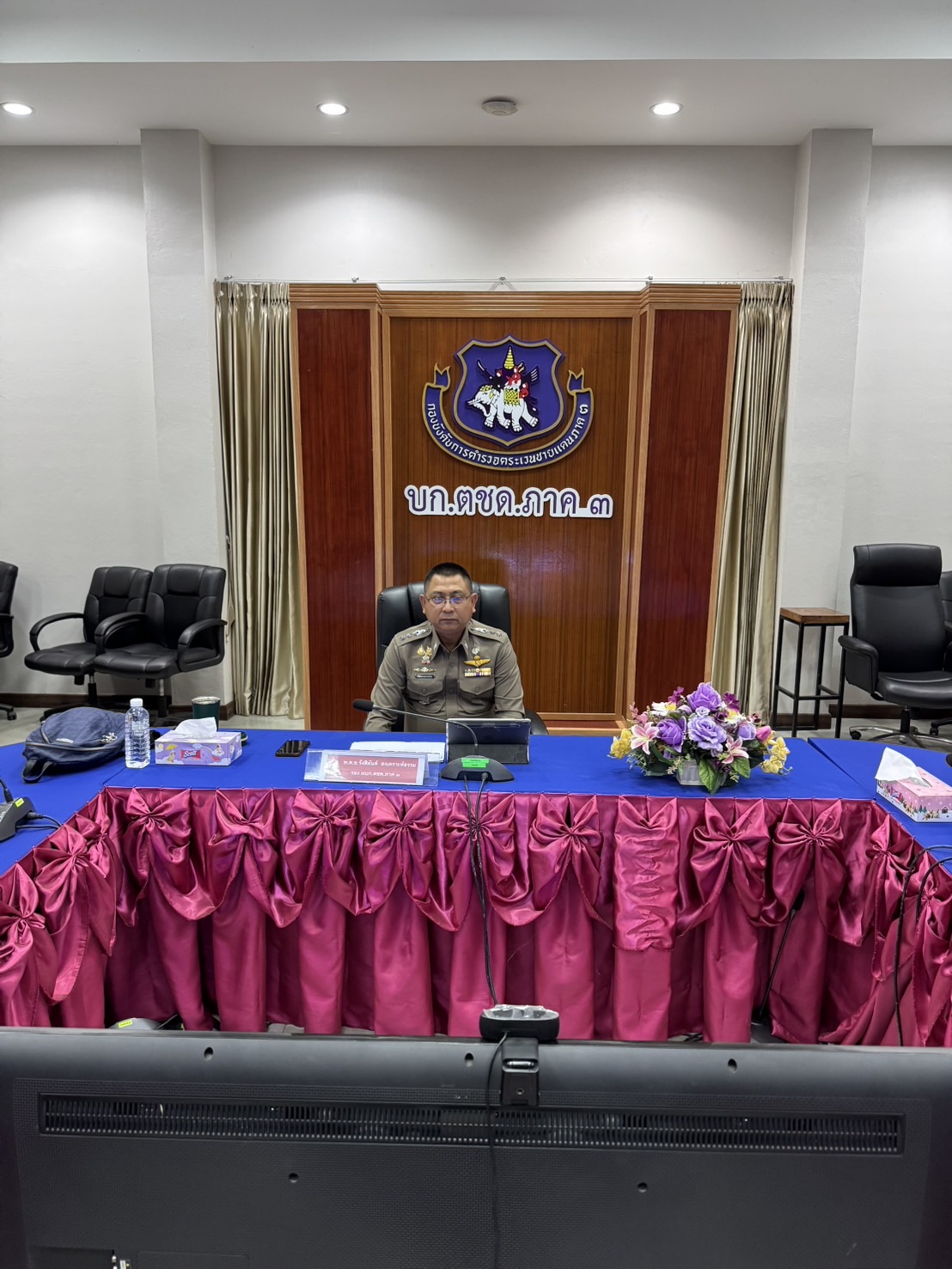 พ.ต.อ.รังสิมันต์ สงเคราะห์ธรรม รอง ผบก.ตชด.ภาค 3 เป็นประธานการประชุม ศอ.ปส.บก.ตชด.ภาค 3 โดยมี พ.ต.ท. สุขสันต์ อินทร์สุข สว.ฝอ.บก.ตชด.ภาค 3 (ขว.), ร.ต.ท.วเรศ เก่งกาจ รอง หน.ศอ.ปส.บก.ตชด.ภาค 3 เข้าร่วมประชุมและผู้แทน กก.ตชด.31-34, ร้อย ตชด.314-347 เข้าร่วมประชุมทางไกล