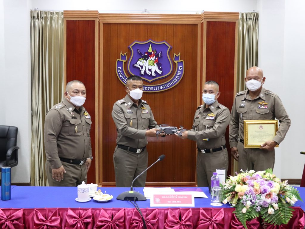 พร้อมมอบอุปกรณ์ โดรนตรวจจับความร้อน ให้กับ พ.ต.อ.อภิชาติ รักพงษ์ ผกก.ตชด.33 เพื่อนำไปใช้ในภารกิจ การปราบปรามยาเสพติด ของหน่วยต่อไป
