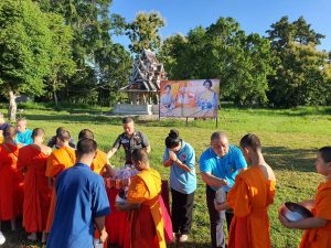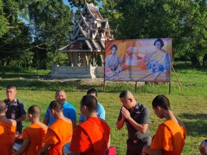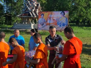 กองบังคับการตำรวจตระเวนชานแดนภาค 3 จึงได้จัดพิธีตักบาตร ขึ้น ณ บริเวณจุดก่อสร้างพลับพลาฯ ภายใน บก.ตชด.ภาค 3  อำเภอแม่แตง จังหวัดเชียงใหม่