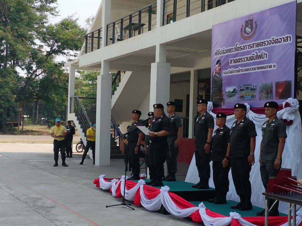 เมื่อ 28 เม.ย.66 เวลา 0930 น. พล.ต.ต.ประกอบ พลเตชา ผบก.ตชด.ภาค 3 ประธานในพิธี การปล่อยแถวสายตรวจ ตามโครงการสายตรวจจิตอาสาลาดตระเวนดับไฟป่า เนื่องด้วยเกิดสถานการณ์ด้านมลพิษทางอากาศจากการเผาป่าในพื้นที่รับผิดชอบ จึงได้ดำเนินการโครงการดังกล่าวและกำหนดปล่อยแถวสายตรวจดับไฟป่าขึ้น โดยมี พ.ต.อ.อพิวัฒน์ กลั่นวารี รอง ผบก.ตชด.ภาค 3, พ.ต.อ.สถาพร แก้วสนิท รอง ผบก.ตชด.ภาค 3 ,ผกก.ตชด.31-34, ผกก.5 บก.กฝ.บช.ตชด. ,ผู้บังคับบัญชาและข้าราชการตำรวจร่วมพิธีดังกล่าว ณ ลานรังสิพราหมณกุล หน้าอาคารพระราชชายาเจ้าดารารัศมี บก.ตชด.ภาค 3