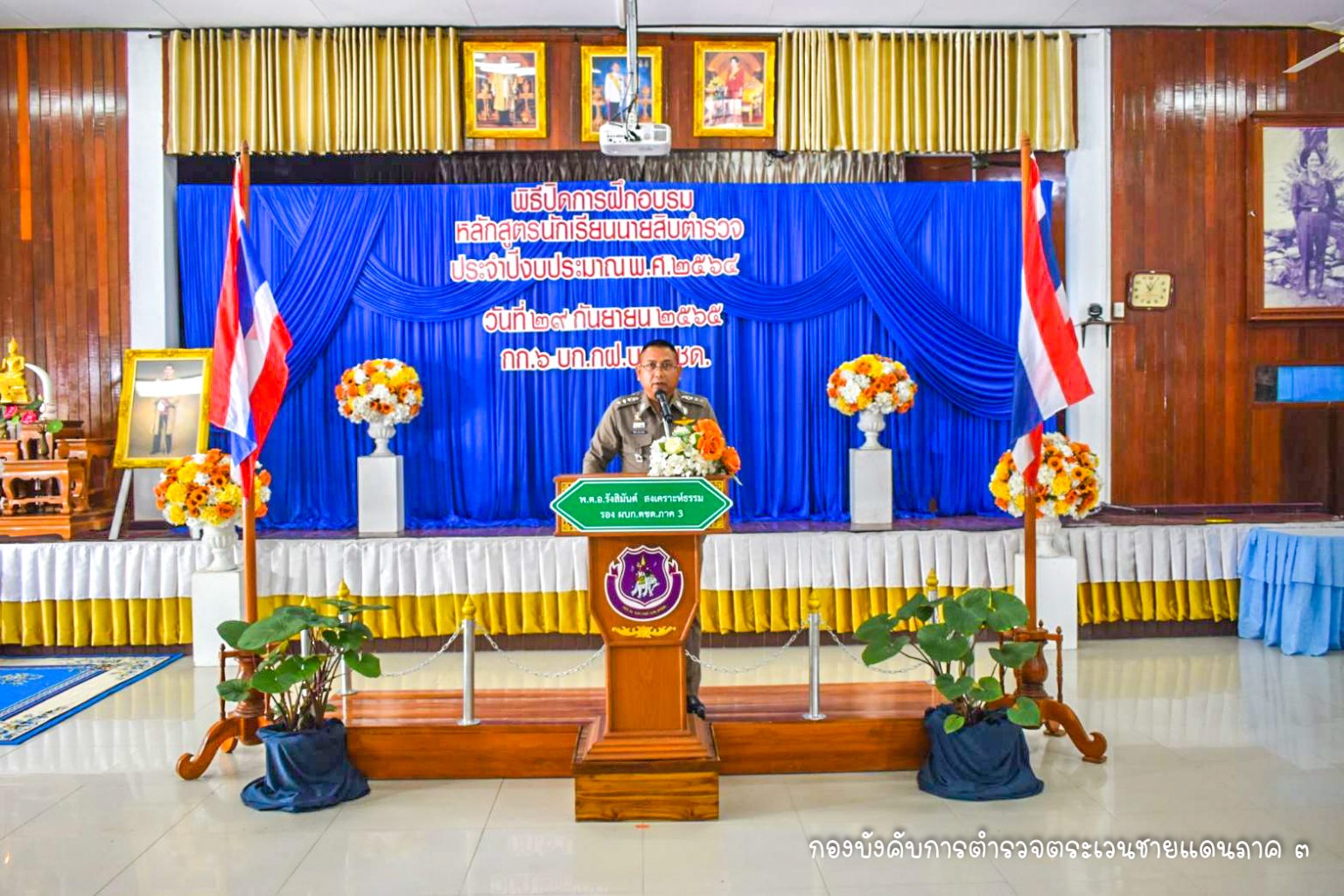 เมื่อ 29 ก.ย.65 เวลา 10.30 น. พ.ต.อ.รังสิมันต์ สงเคราะห์ธรรม รอง ผบก.ตชด.ภาค 3 เป็นประธานพิธีปิดการฝึกอบรมหลักสูตรนักเรียนนายสิบ(นสต.) ประจำปีงบประมาณ 2564 รุ่นที่ 1/64 ณ.ห้องประชุมรามคำแหง กก.6 บก.กฝ.บช.ตชด.(ค่ายรามคำแหงมหาราช) อ.เมืองสุโขทัย จว.สุโขทัย
