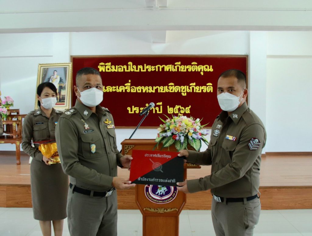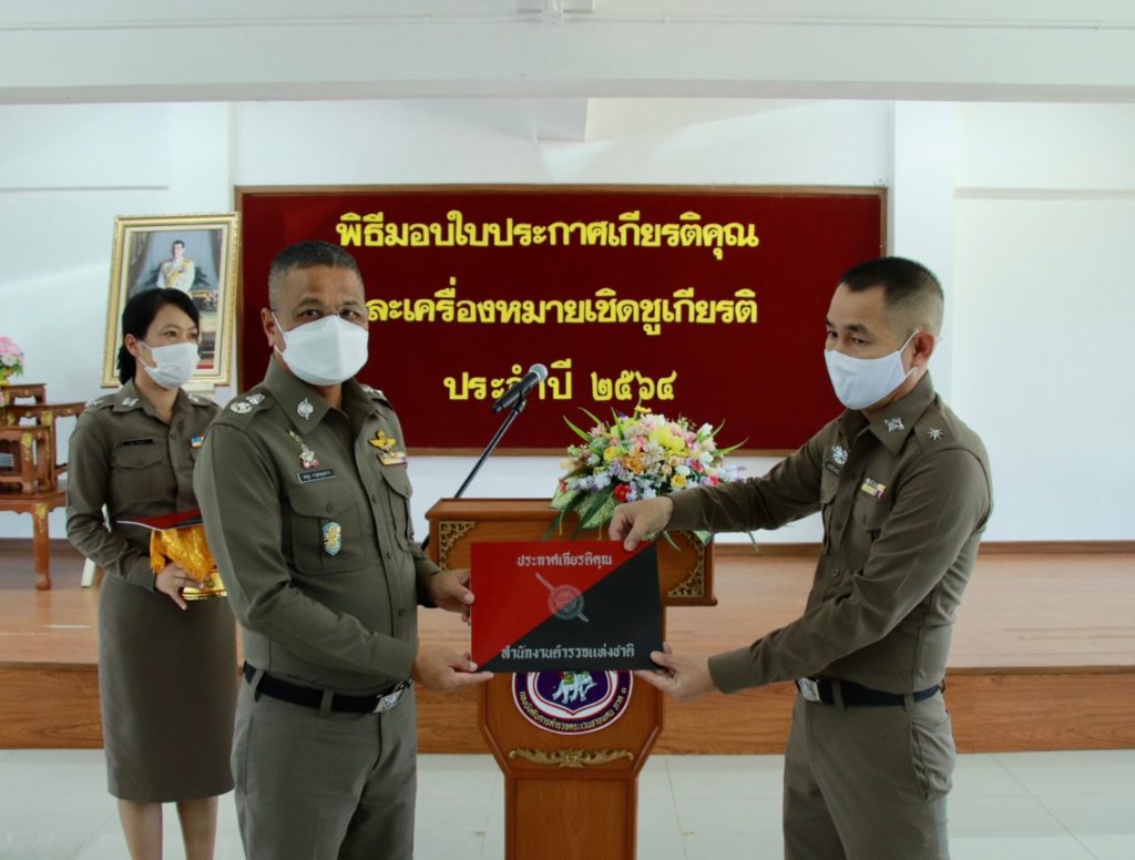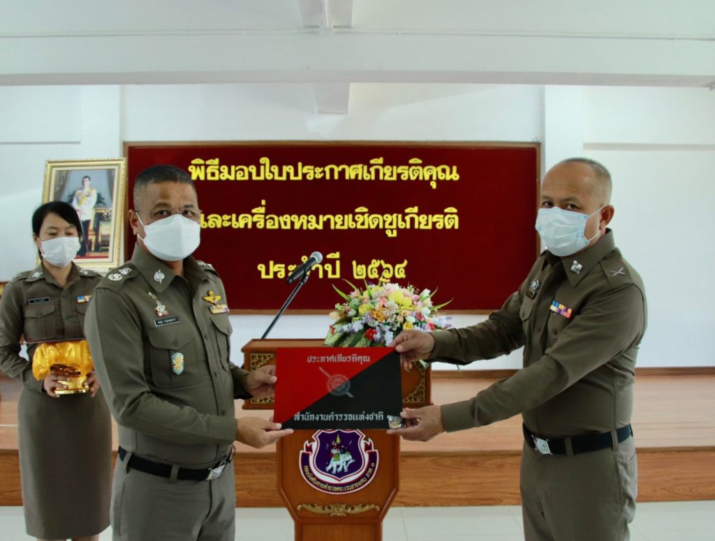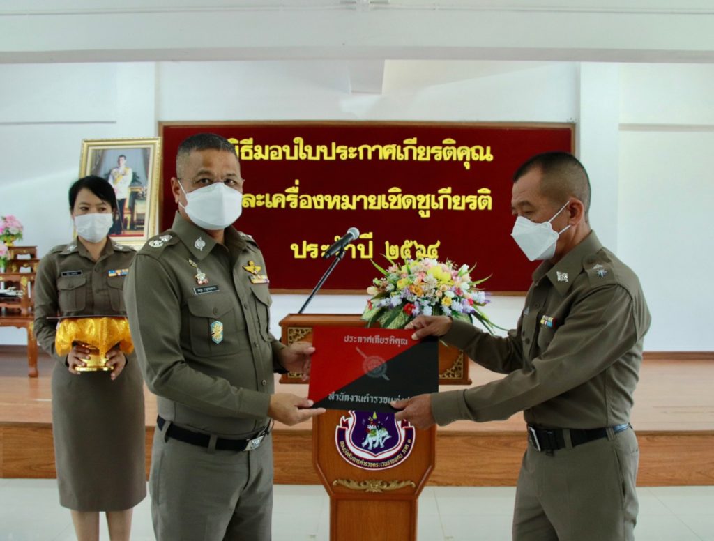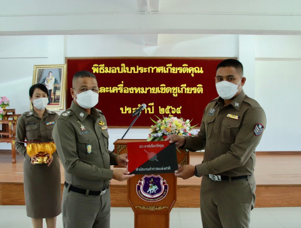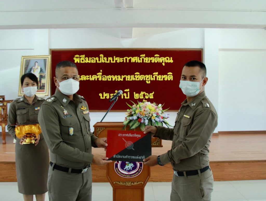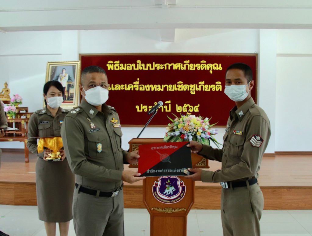 เมื่อ 4 ก.ค. 65 เวลา 13.30 น. พล.ต.ต.สมกูล กาญจนอุดมการ ผบก.ตชด.ภาค 3 ให้เกียรติเป็นประธานมอบใบประกาศเกียรติคุณและเครื่องหมายเชิดชูเกียรติ ประจำปี 2564 แก่ข้าราชการตำรวจในสังกัด บก.ตชด.ภาค 3 ณ ห้องดารารัศมี 1 บก.ตชด.ภาค 3 เพื่อเป็นขวัญและกำลังใจในการปฏิบัติหน้าที่ราชการต่อไป