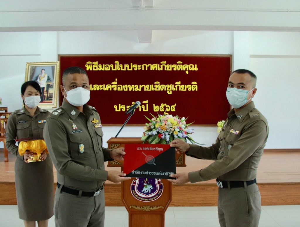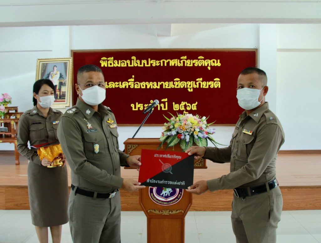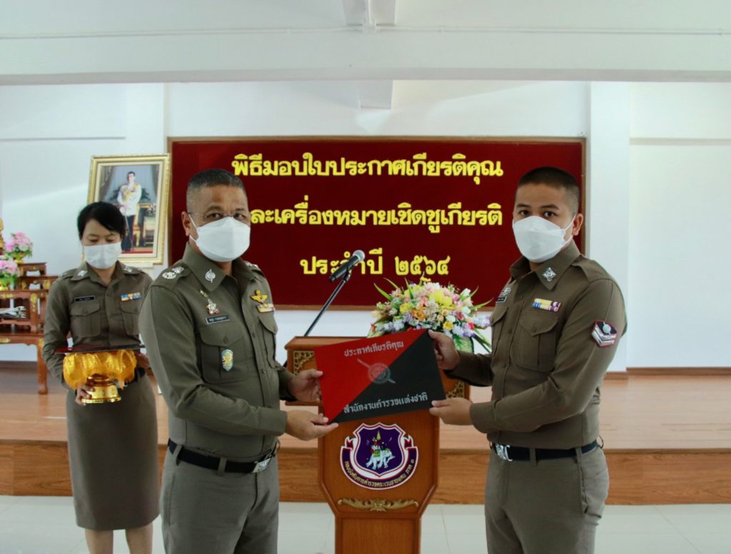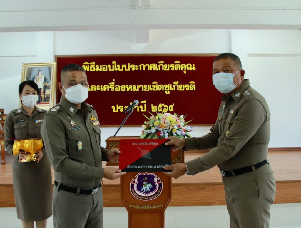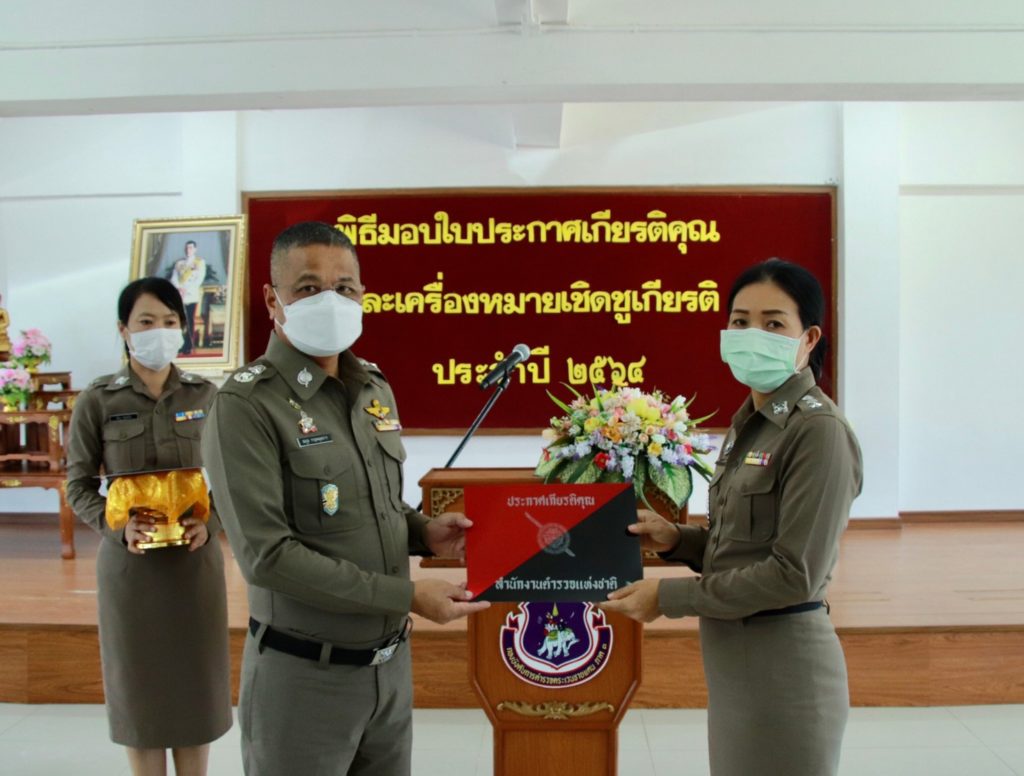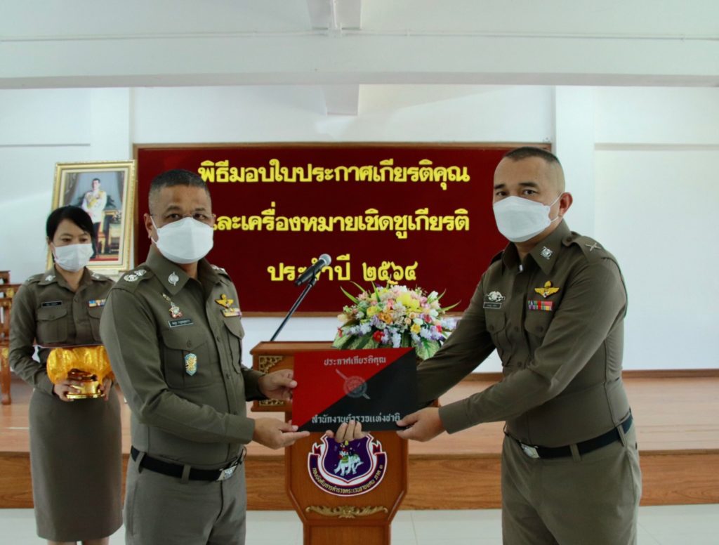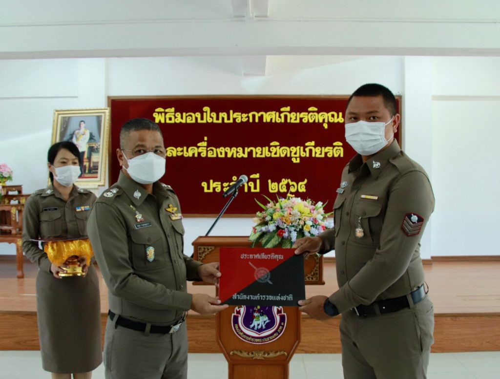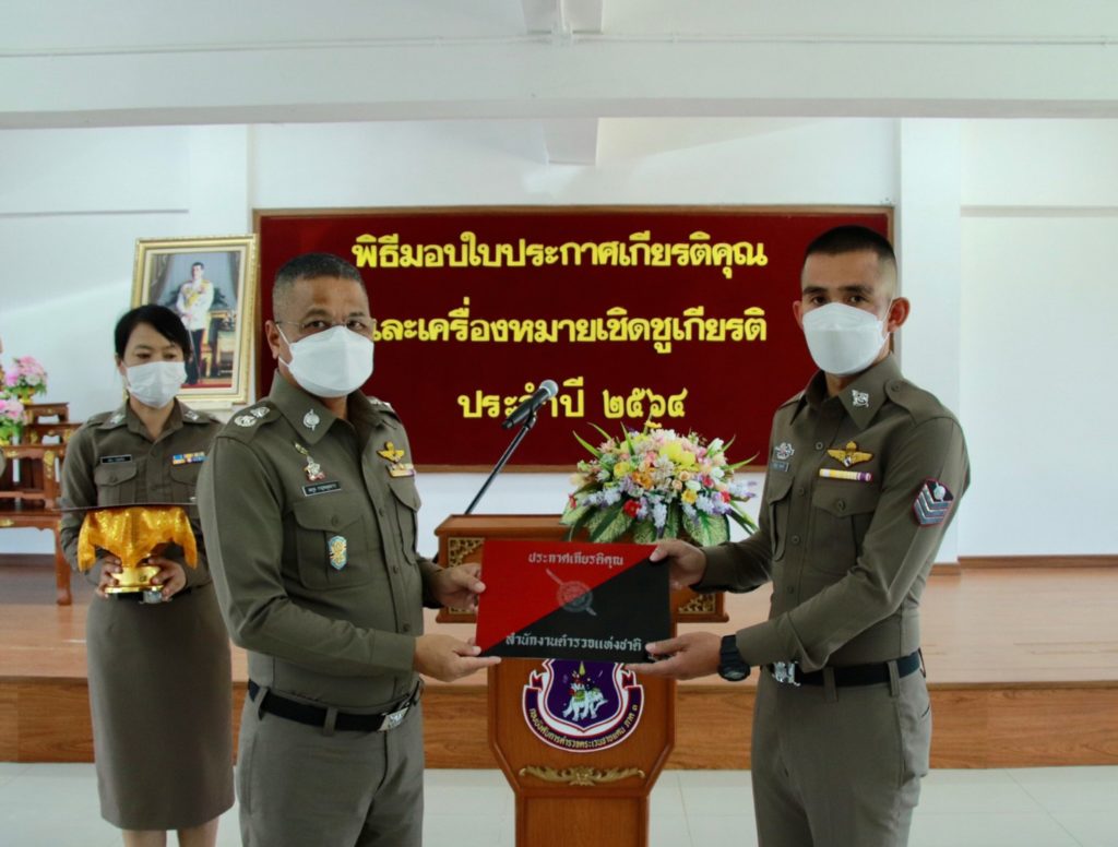 เมื่อ 4 ก.ค. 65 เวลา 13.30 น. พล.ต.ต.สมกูล กาญจนอุดมการ ผบก.ตชด.ภาค 3 ให้เกียรติเป็นประธานมอบใบประกาศเกียรติคุณและเครื่องหมายเชิดชูเกียรติ ประจำปี 2564 แก่ข้าราชการตำรวจในสังกัด บก.ตชด.ภาค 3 ณ ห้องดารารัศมี 1 บก.ตชด.ภาค 3 เพื่อเป็นขวัญและกำลังใจในการปฏิบัติหน้าที่ราชการต่อไป