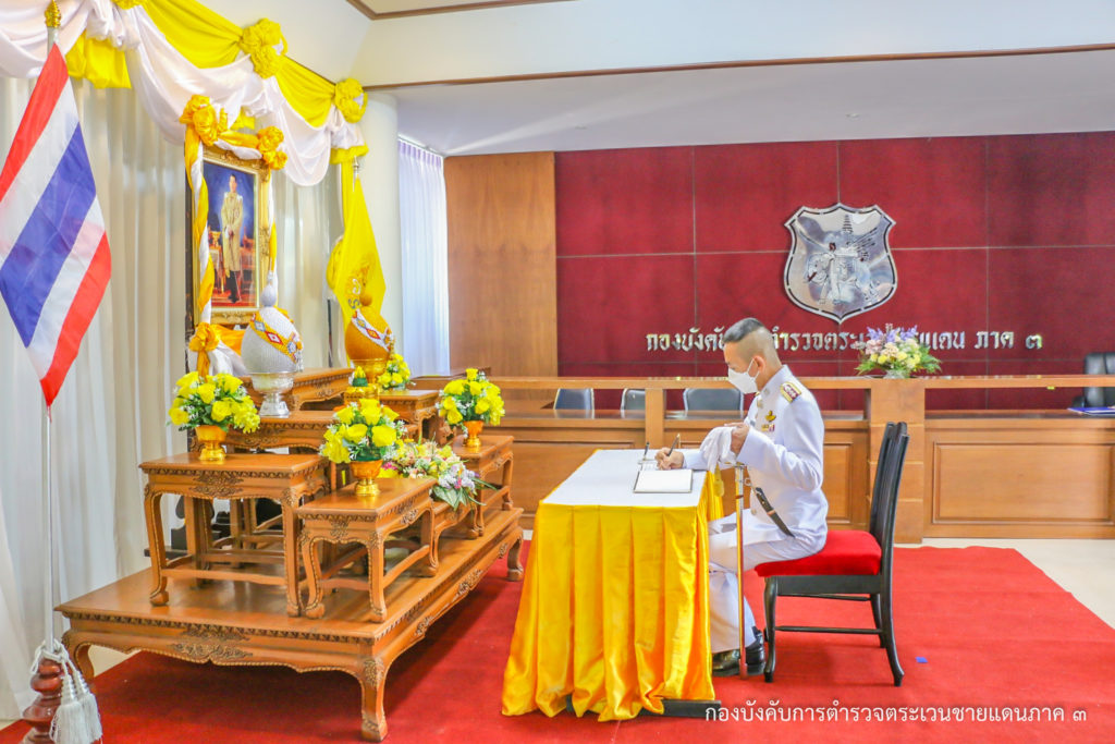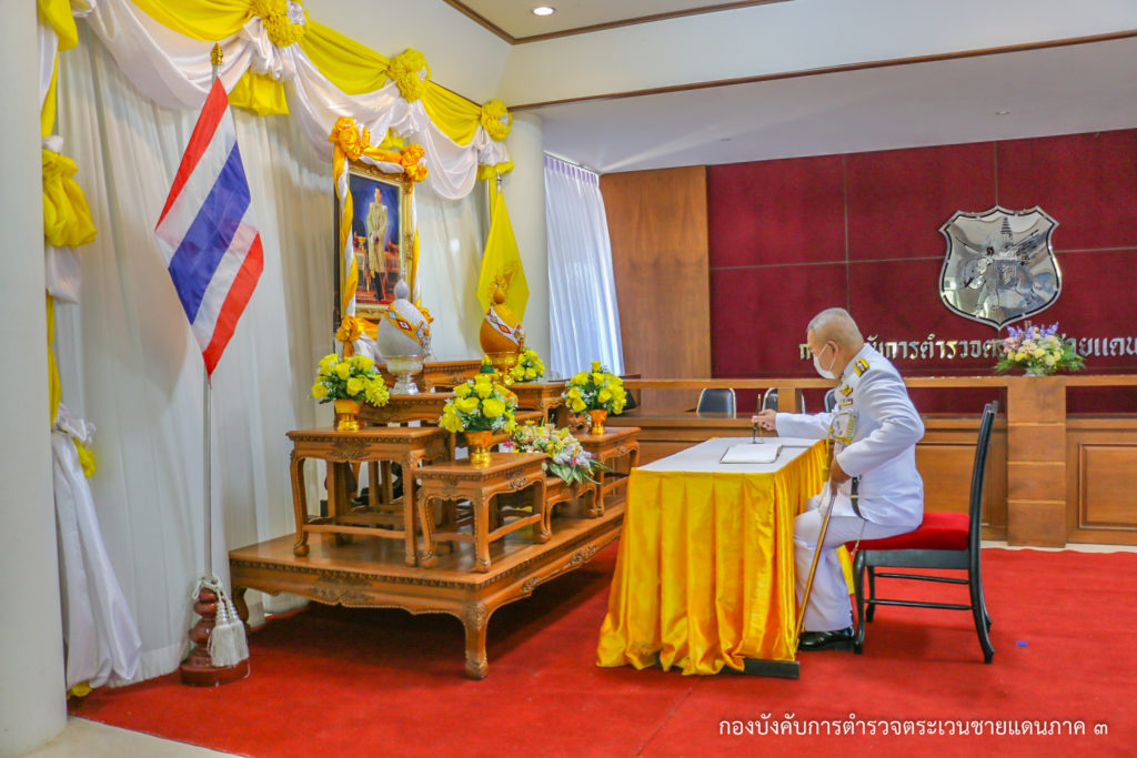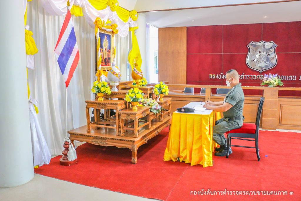 เมื่อ 27 ก.ค.65 เวลา 09.00 น. บก.ตชด.ภาค 3 ได้จัดพิธีลงนามถวายพระพรชัยมงคล และพิธีถวายสัตย์ปฏิญาณเพื่อเป็นข้าราชการที่ดีและพลังของแผ่นดิน เนื่องในวันเฉลิมพระชนมพรรษา พระบาทสมเด็จพระปรเมนทรรามาธิบดีศรีสินทรมหาวชิราลงกรณ พระวชิรเกล้าเจ้าอยู่หัว 28 กรกฎาคม 2565 ณ ห้องโถง ชั้น 1 อาคาร บก.ตชด.ภาค 3 โดยมี พ.ต.อ.อพิว้ฒน์ กลั่นวารี รอง ผบก.ตชด.ภาค 3 เป็นประธานในพิธี พร้อมด้วยข้าราชการตำรวจ ฝอ.บก.ตชด.ภาค 3 โดยประธานได้กล่าวคำถวายพระพรชัยมงคลฯ และนำข้าราชการตำรวจ ฝอ.บก.ตชด.ภาค 3 กล่าวคำถวายสัตย์ปฏิญาณเพื่อเป็นข้าราชการที่ดีและพลังของแผ่นดิน