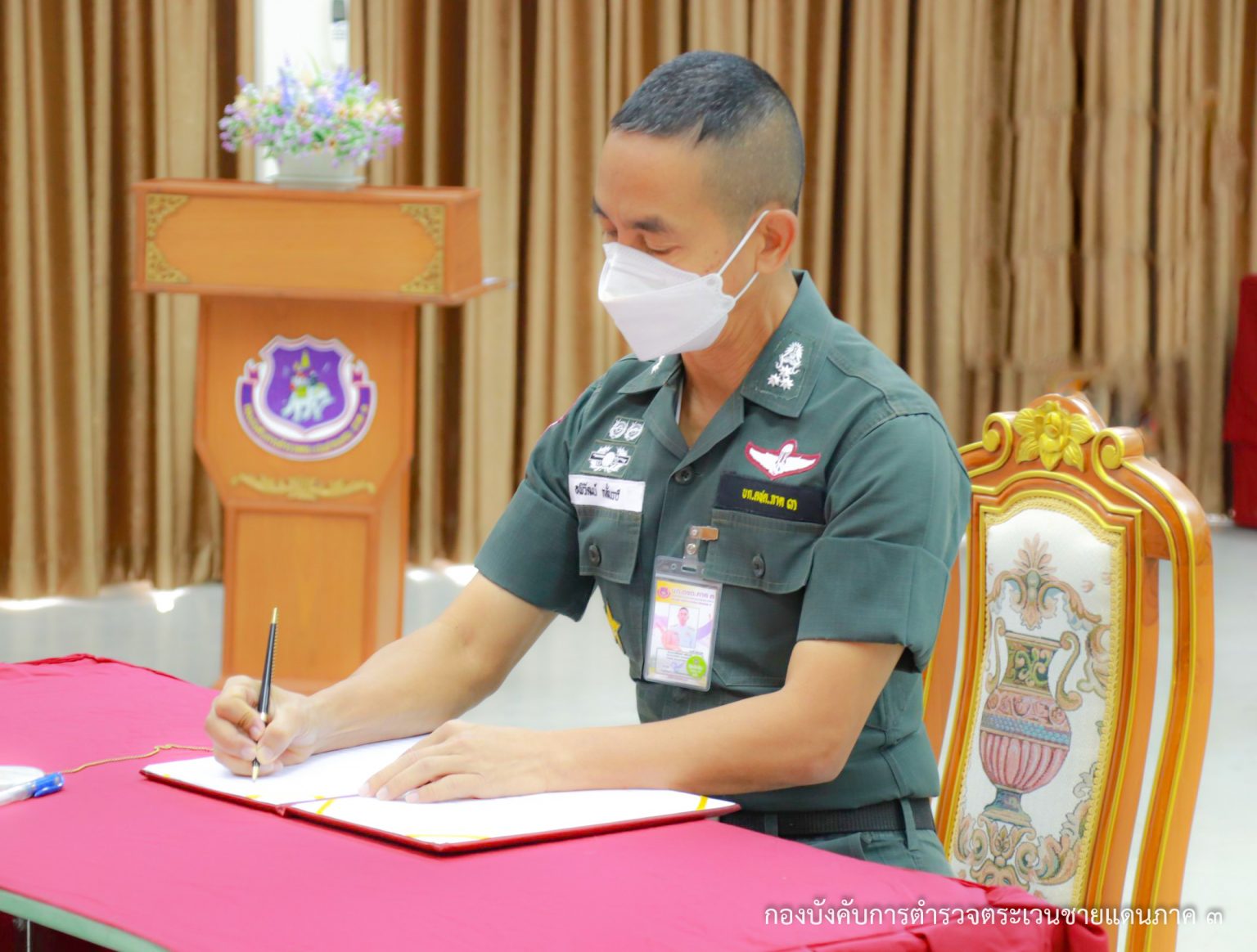 เมื่อ 29 ธ.ค. 65 เวลา 09.09 น. ภายใต้อำนวยการของ พล.ต.ต.ประกอบ พลเตชา ผบก.ตชด.ภาค 3 มอบหมายให้ พ.ต.อ.อพิวัฒน์ กลั่นวารี รอง ผบก.ตชด.ภาค 3 พร้อมด้วยข้าราชการตำรวจ ฝ่ายอำนวยการ บก.ตชด.ภาค 3 จัดพิธีสวดมนต์ถวายพระพรชัยมงคลแด่สมเด็จพระเจ้าลูกเธอ เจ้าฟ้าพัชรกิติยาภา นเรนทิราเทพยวดี กรมหลวงราชสาริณีสิริพัชร มหาวัชรราชธิดา ให้ทรงหายจากอาการพระประชวรโดยเร็ว โดยอัญเชิญบทสวด “โพชฌังคปริตร” ร่วมอธิษฐานจิตถวายพระพรด้วยความจงรักภักดี พร้อมร่วมลงนามถวายพระพร ณ อาคารพระราชชายาเจ้าดารารัศมี บก.ตชด.ภาค 3 ต.อินทขิล อ.แม่แตง จว.เชียงใหม่