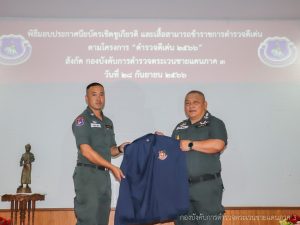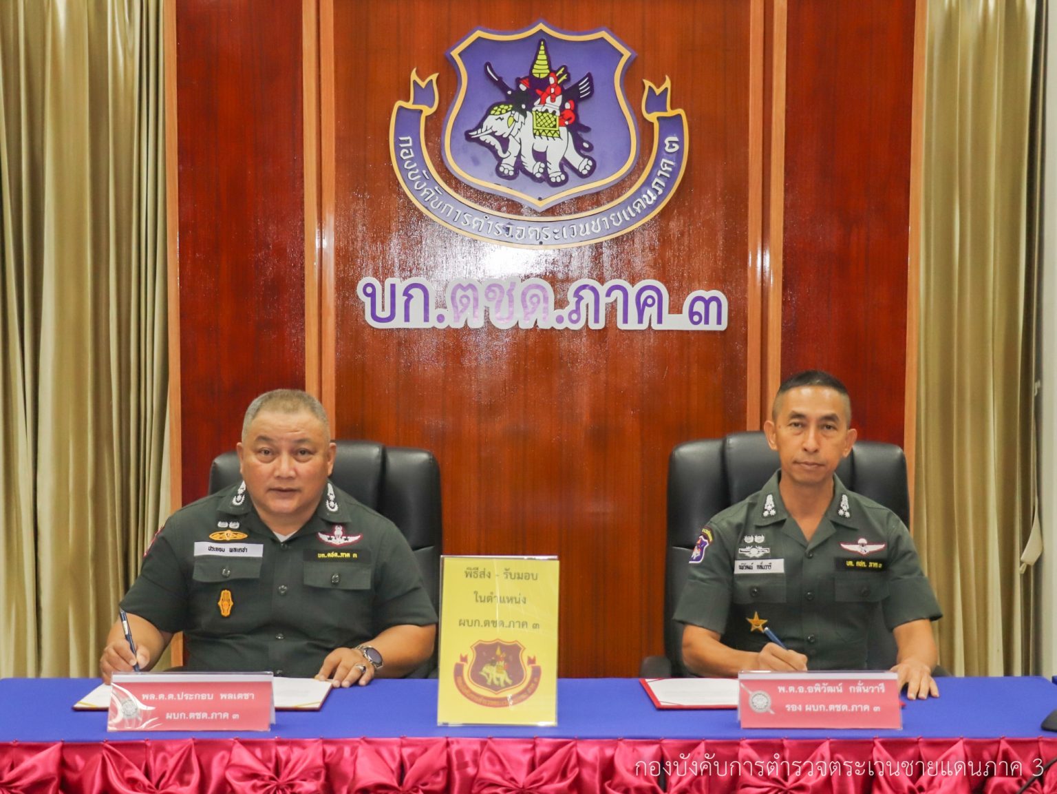 เมื่อ 28 ก.ย.65 เวลา 10.30 น. บก.ตชด.ภาค 3 ได้จัดพิธีส่ง – รับมอบหน้าที่และการบังคับบัญชาในตำแหน่ง ผบก.ตชด.ภาค 3 ระหว่าง พล.ต.ต.ประกอบ พลเตชา ผบก.ตชด.ภาค 3 และ พ.ต.อ.อพิวัฒน์ กลั่นวารี รอง ผบก.ตชด.ภาค 3 มอบเสื้อสามารถให้กับข้าราชการตำรวจดีเด่น พร้อมมอบชุดวอร์มให้กับข้าราชการตำรวจ ฝอ.บก.ตชด.ภาค 3