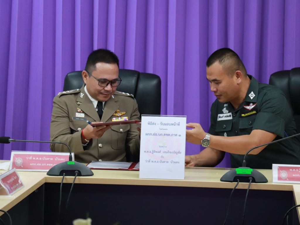 เมื่อ 1 ก.พ.66 เวลา 09.00 น. บก.ตชด.ภาค 3 ได้จัดพิธีส่ง-รับมอบหน้าที่ ผกก.ฝอ.บก.ตชด.ภาค 3 โดย ว่าที่ พ.ต.อ.บันดาล บัวแดง ได้เดินทางมารับตำเเหน่ง ผกก.ฝอ.บก.ตชด.ภาค 3 จาก พ.ต.อ.ฐิติพงศ์ เจนกิจเจริญชัย ผกก.ฝอ.บก.ตชด.ภาค 3 ณ ห้องประชุมดารารัศมี 2 บก.ตชด.ภาค 3 ต.อินทขิล อ.แม่แตง จว.เชียงใหม่
