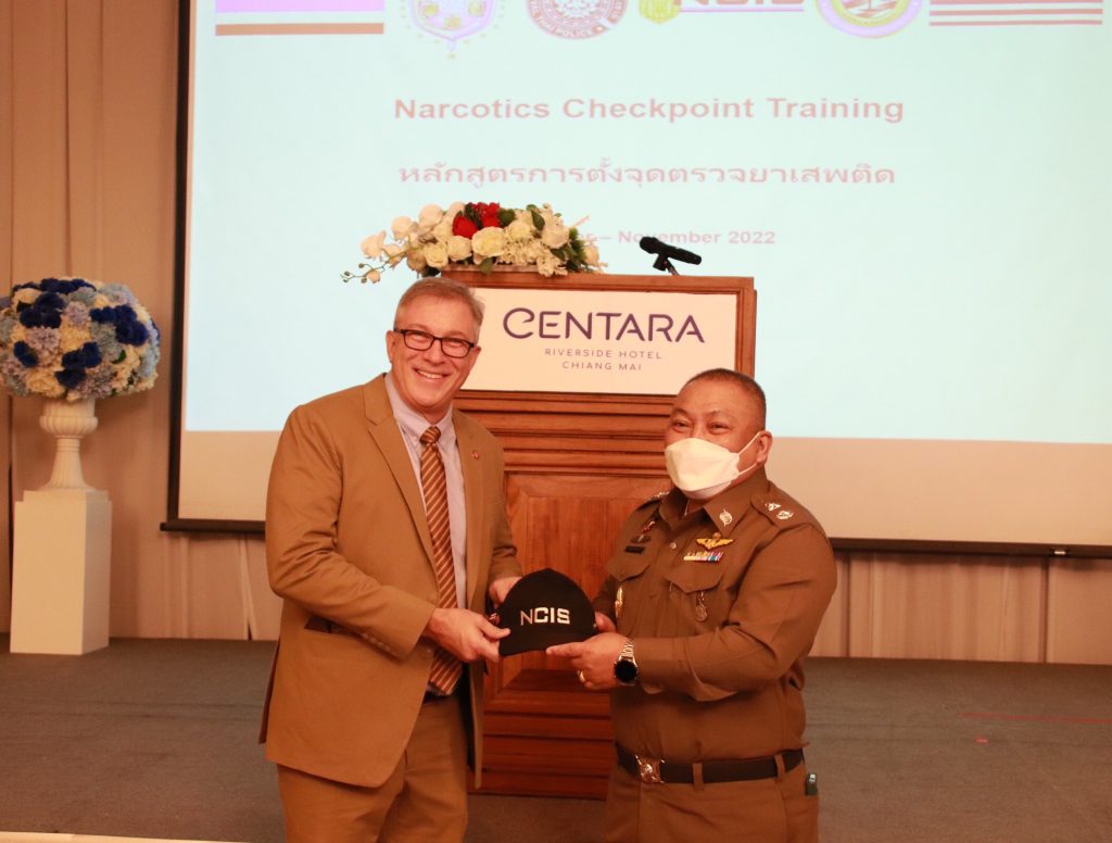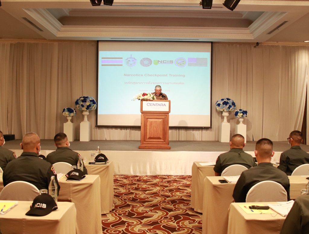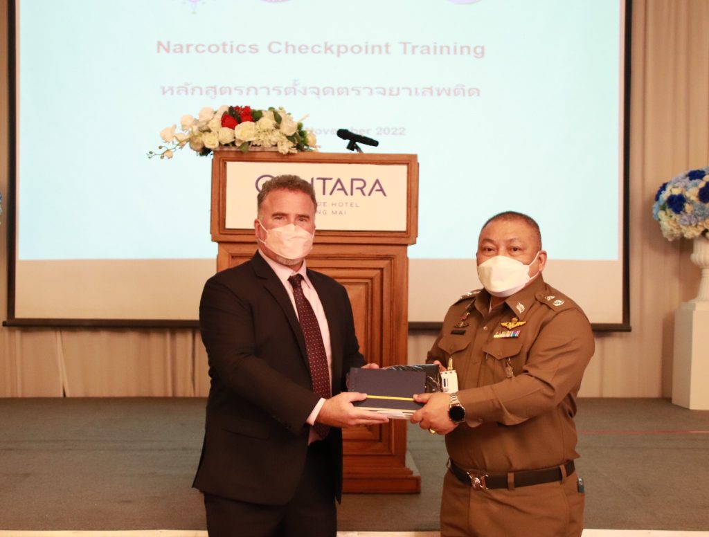 เมื่อ 31 ต.ค.65 เวลา 08.30 น. พล.ต.ต.ประกอบ พลเตชา ผบก.ตชด.ภาค 3 ร่วมกับสถานฑูตสหรัฐฯ ,หน่วยยาเสพติด INL และ หน่วยNCIS เข้าร่วมเป็นเกียรติในพิธีเปิดการฝึกอบรมการตั้งจุดตรวจยาเสพติด (Narcotics Checkpoint Training Course) ณ โรงแรมเซ็นทารา ริเวอร์ไซด์ ถ.เชียงใหม่-ลำพูน จว.เชียงใหม่ ระหว่าวันที่ 31 ต.ค. – 4 พ.ย.65 มีผู้เข้ารับการอบรม ได้แก่ ข้าราชการตำรวจ สังกัด บก.ตชด.ภาค 3 และในสังกัด กก.ตชด.31-34 จำนวน 35 นาย โดยมี พล.ต.ต.ประกอบ พลเตชา เป็นประธานในพิธี