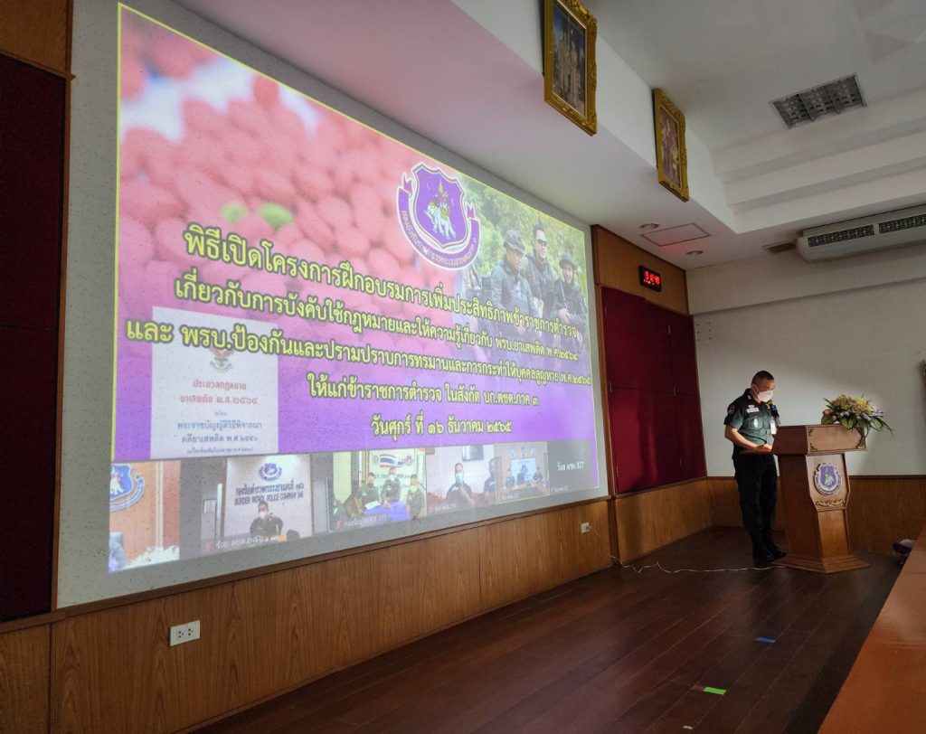เมื่อ 16 ธ.ค.65 เวลา 09.10 น. พล.ต.ต ประกอบ พลเตชา ผบก.ตชด.ภาค 3 เป็นประธานในพิธีเปิดการอบรมโครงการเพิ่มประสิทธิภาพข้าราชการตำรวจเกี่ยวกับการบังคับใช้กฎหมายและให้ความรู้เกี่ยวกับ พ.ร.บ.ให้ใช้ประมวลกฎหมายยาเสพติด พ.ศ.2564 พ.ร.บ.ป้องกันและปราบปรามการทรมานและการกระทำให้บุคคลสูญหาย พ.ศ.2565 โดยมีวัตถุประสงค์ในการจัดอบรมดังกล่าว เพื่อให้ผู้เข้ารับการฝึกอบรมมีความรู้ ความเข้าใจเกี่ยวกับการบังคับใช้กฎหมาย เพื่อนำไปใช้ในการปฏิบัติหน้าที่ ซึ่งตามวิสัยทัศน์ ผบ.ตร.”เป็นตำรวจมืออาชีพ ทำงานเชิงรุก เพื่อความสงบสุขของประชาชน” โดยความเป็นมืออาชีพประกอบด้วย 4 ข้อ ได้แก่ แม่นยำข้อกฎหมาย เชี่ยวชาญยุทธวิธี บุคลิกภาพดี และมีจริยธรรม เนื่องจากปัจจุบัน ได้มีกฎหมายที่เกี่ยวข้องดังกล่าว บก.ตชด.ภาค 3 จึงได้จัดอบรม โดยเชิญวิทยากรบรรยาย ประกอบด้วย