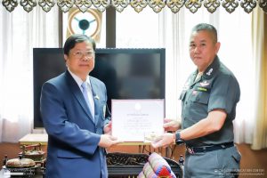 เมื่อ 11 ก.ค.67 เวลา 13.30 น. ผบก.ตชด.ภาค 3 มอบหมายให้ พ.ต.อ.อภิชาติ รักพงษ์ รอง ผบก.ตชด.ภาค 3 พร้อมด้วย พ.ต.ท.สมพร รามพุตซา สว.ฝอ.บก.ตชด.ภาค 3 (กร.) เป็นผู้แทนมอบปีกร่มกิตติมาศักดิ์ และใบประกาศ เนื่องด้วยเป็นผู้ทำคุณประโยชน์ให้แก่สำนักงานตำรวจแห่งชาติ ให้แก่ รศ.ดร.ชาตรี มณีโกศล รักษาการแทนอธิการบดี และ ดร.ถนัด บุญชัย รองอธิการบดี ณ มหาวิทยาลัยราชภัฎเชียงใหม่