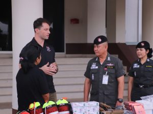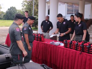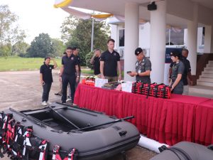 เมื่อ 8 ก.ย.68 เวลา 09.30 น. พ.ต.อ.อภิชาติ รักพงษ์ รอง ผบก.ตชด.ภาค 3 เป็นผู้แทน บก.ตชด.ภาค 3 พร้อม กำลังพลที่มีรายชื่อในชุดช่วยเหลือผู้ประสบภัย ชุดที่ 1 และชุดที่ 2 ร่วมรับมอบเรือ และอุปกรณ์ช่วยเหลือผู้ประสบภัย จากทีมกิจการพลเรือนสหรัฐอเมริกาประจำประเทศไทย ณ ลานรวมพลหน้าอาคาร บก.ตชด.ภาค 3