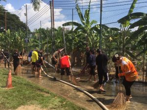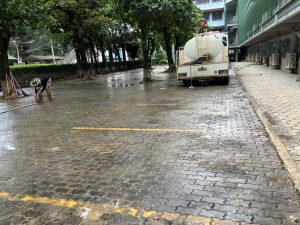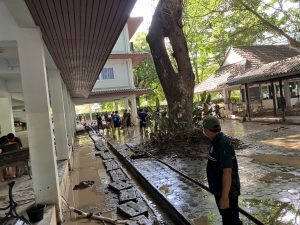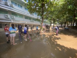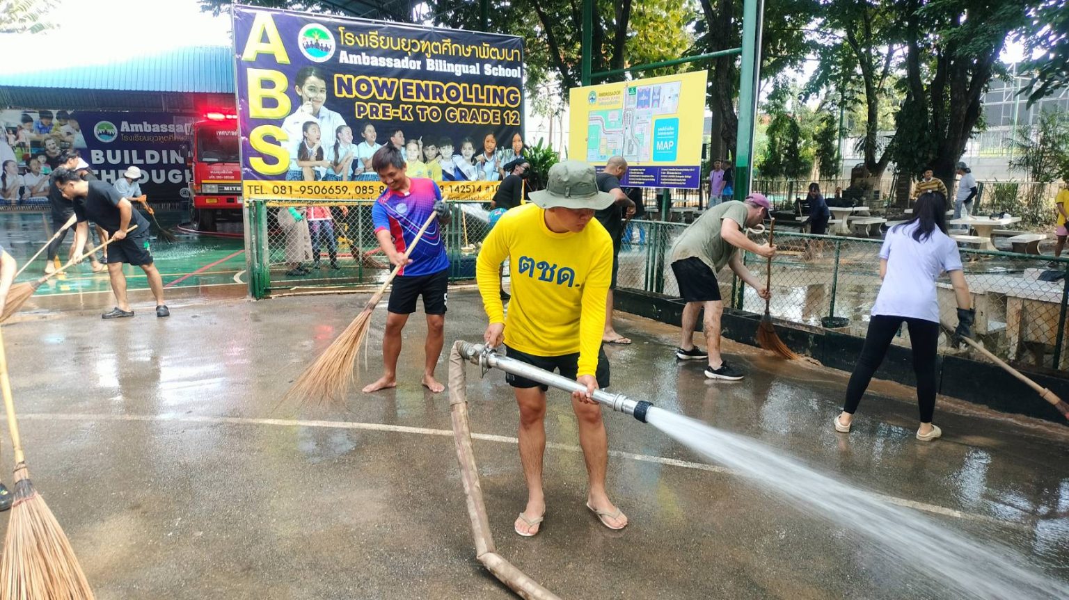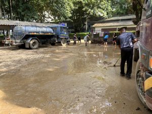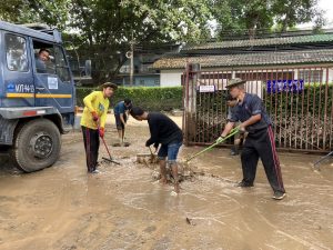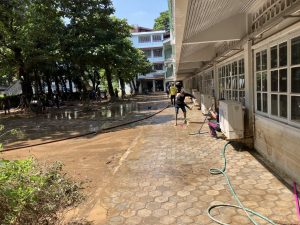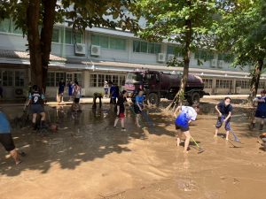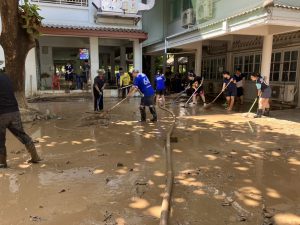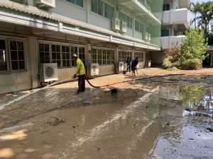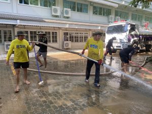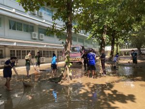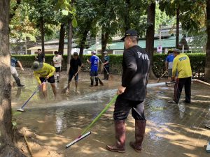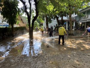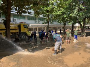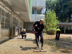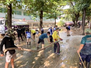 วันที่ 15 ต.ค.67 เวลา 08.30 น.- 18.00 น. พล.ต.ต.วรพัฒน์ บุญมา ผบก.ตชด.ภาค 3 มอบหมายให้ พ.ต.ท.สุทธิพร นันตา รอง ผกก.ฝอ.ฯ พร้อมด้วยข้าราชการตำรวจ ฝอ.ฯ 1 ชป.จำนวน 9 นาย รยบ. 6 ล้อ 1 คัน และรถบรรทุกน้ำ 2 คัน ออกช่วยเหลือประชาชนที่ประสบอุทกภัย ร่วมกับคณะครูโรงเรียนยุวทูตศึกษาพัฒนา อ.สารภี จว.เชียงใหม่ ทำความสะอาด ฉีดล้างดินโคลน ในบริเวณโรงเรียน ร่วมกับ อบจ.เชียงใหม่, ท่าอากาศยานเชียงใหม่, มทบ.33 และคณะครู บุคลากรของโรงเรียนปรินส์รอยแยลส์วิทยาลัย ต.วัดเกต อ.เมือง จว.เชียงใหม่ เข้าฉีดล้างดินโคลน ทำความสะอาด บริเวณพื้นอาคาร ลานจอดรถ และถนนภายในโรงเรียนปรินส์รอยแยลส์วิทยาลัย