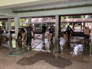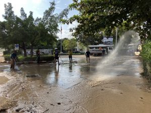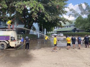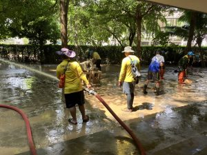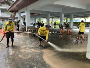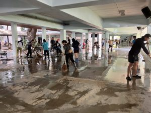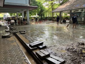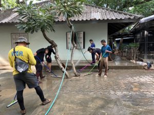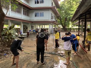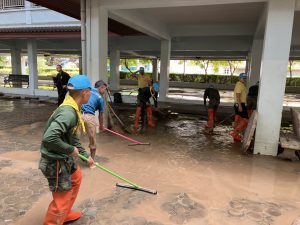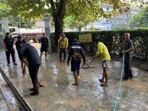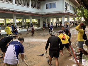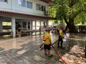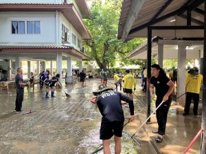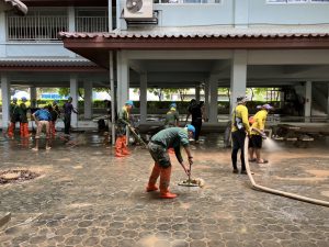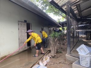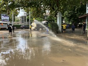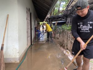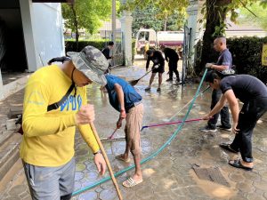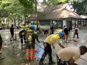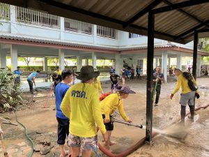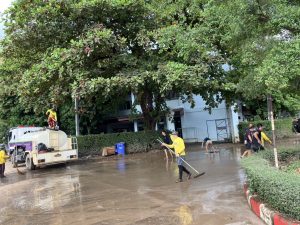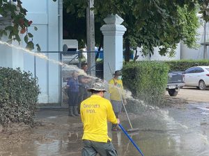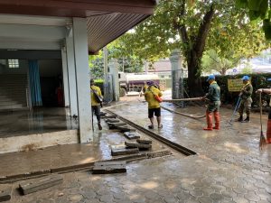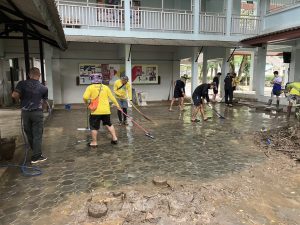 วันที่ 16 ต.ค.67 เวลา 08.30 น.- 17.00 น. พล.ต.ต.วรพัฒน์ บุญมา ผบก.ตชด.ภาค 3 มอบหมายให้ พ.ต.ท.สุทธิพร นันตา รอง ผกก.ฝอ.ฯ พร้อมด้วยข้าราชการตำรวจ ฝอ.ฯ 1 ชป.จำนวน 9 นาย รยบ. 6 ล้อ 1 คัน และรถบรรทุกน้ำ 2 คัน ออกช่วยเหลือประชาชนที่ประสบอุทกภัย ร่วมกับ กำลังพลทหารจาก ร.7 พัน 1, คณะครู และบุคลากรโรงเรียนปรินส์รอยแยลส์วิทยาลัย เข้าขุดลอกรางระบายน้ำเนื่องจากมีดินโคลนอุดตันในรางระบายน้ำ ฉีดล้างดินโคลน ทำความสะอาด บริเวณพื้นอาคาร ลานจอดรถ และถนนภายในโรงเรียน