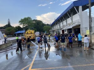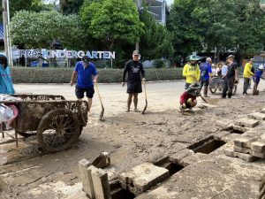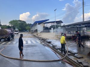 วันที่ 14 ต.ค.67 เวลา 08.30 น.- 18.00 น. พล.ต.ต.วรพัฒน์ บุญมา ผบก.ตชด.ภาค 3 มอบหมายให้ พ.ต.ท.สุทธิพร นันตา รอง ผกก.ฝอ.ฯ พร้อมด้วยข้าราชการตำรวจ ฝอ.ฯ 1 ชป.จำนวน 9 นาย  รยบ. 6 ล้อ 1 คัน และรถบรรทุกน้ำ 2 คัน ออกช่วยเหลือประชาชนที่ประสบอุทกภัย ร่วมกับ อบจ.เชียงใหม่ และคณะครูฯ เข้าขุดลอกรางระบายน้ำเนื่องจากมีดินโคลนอุดตันในรางระบายน้ำ ฉีดล้างดินโคลน ทำความสะอาด บริเวณพื้นอาคาร ลานจอดรถ และถนนภายในโรงเรียนปรินส์รอยแยลส์วิทยาลัย ต.ช้างม่อย อ.เมือง จ.เชียงใหม่
