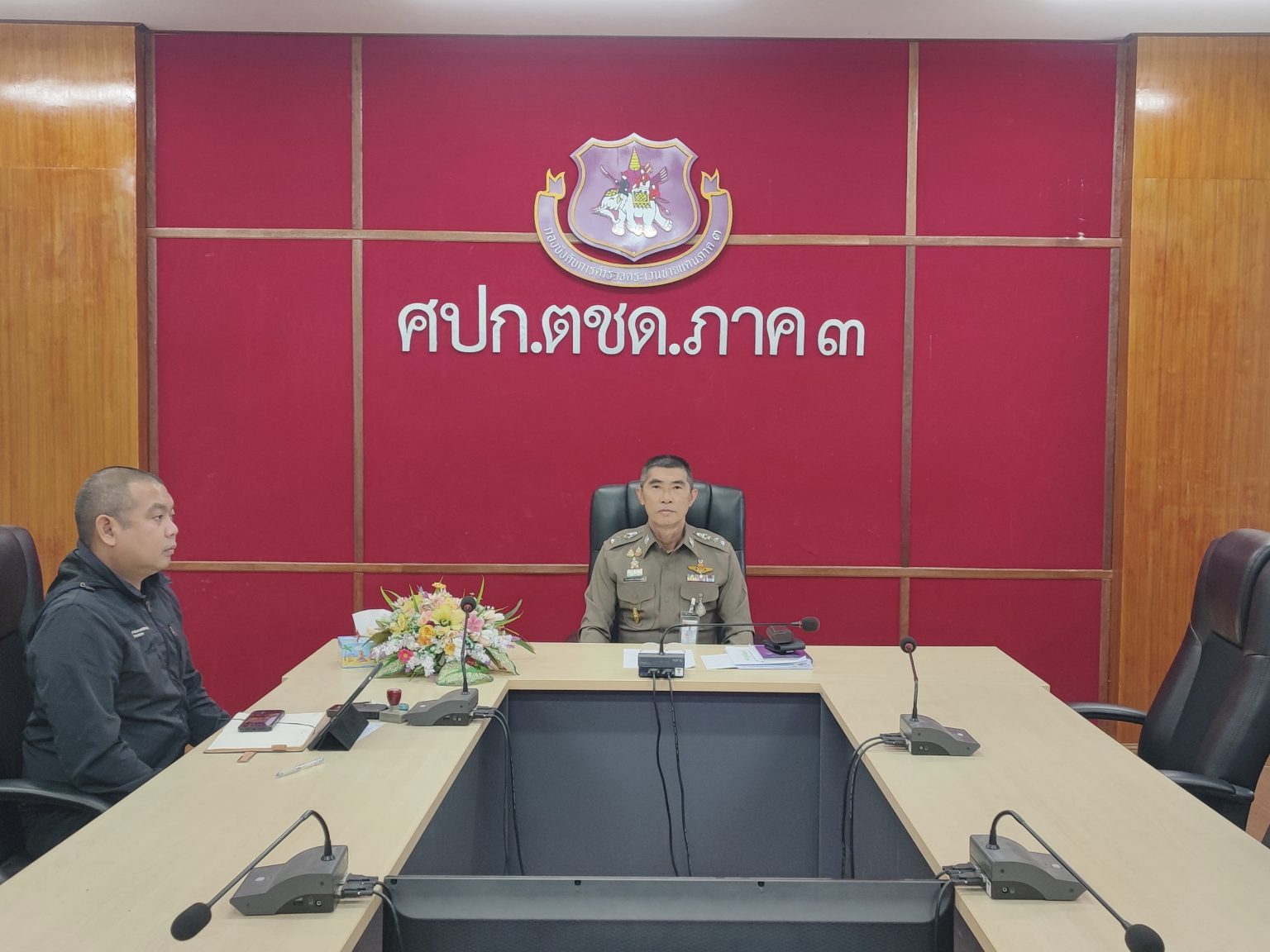 พ.ต.อ.วิศาลพงศ์ สร้อยกุลบดี รอง ผบก.ตชด.ภาค 3 พร้อมด้วย พ.ต.ท.วิมาณ ฉิมพล สว.ฝอ.ฯ (ผงป.) เข้าร่วมการประชุมขับเคลื่อนงานของศูนย์ปราบปรามอาชญากรรมทางเทคโนโลยีสารสนเทศ (ศปอส.ตร.) ครั้งที่ 3/2569