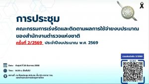 เข้าร่วมการประชุมคณะกรรมการเร่งรัดและติดตามผลการใช้จ่ายงบประมาณ ของ ตร. ครั้งที่ 2 ประจำปีงบประมาณ พ.ศ.2569 ผ่านระบบการประชุมทางไกล (Video Conference) ณ ห้องประชุม ศปก.ตชด.ภาค 3 โดยมี พล.ต.อ.กรไชย คล้ายคลึง รอง ผบ.ตร.(บร.) เป็นประธานการประชุม